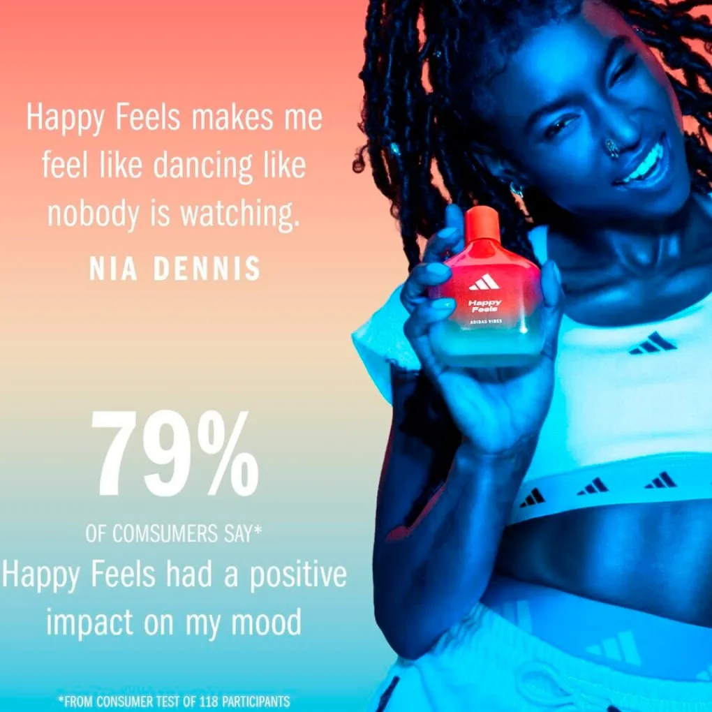 Voel de vibe en de opbeurende energie van Adidas Vibes Happy Feels Eau de Parfum. Hij is positief en sprankelend, zodat je de vreugde van het moment ervaart, net als op vrolijke zomerdagen.