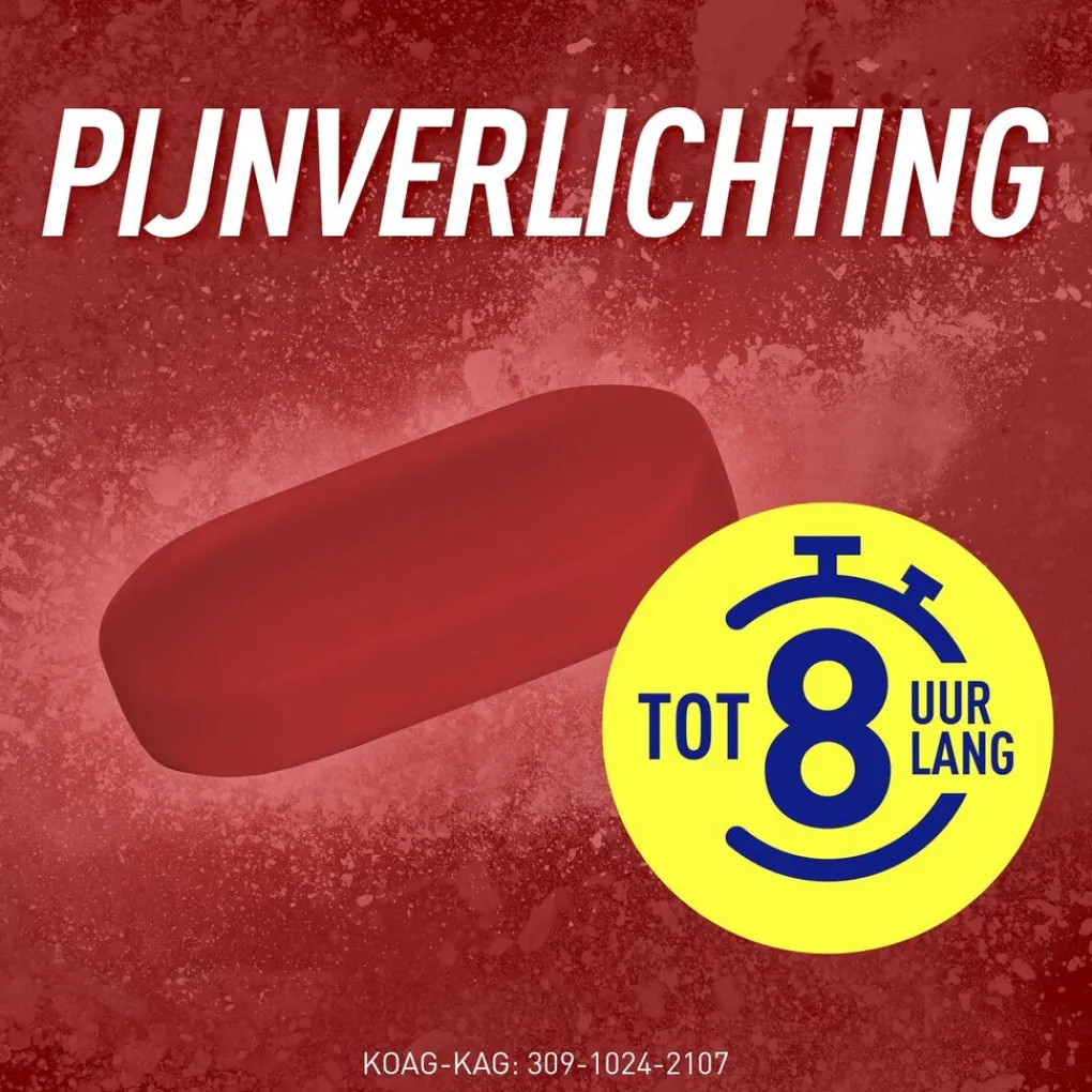 Gebruiken bij: Lichte tot matige pijn, waaronder reumatische pijn, spierpijn, rugpijn, hoofdpijn, kiespijn, menstruatiepijn, voor de verlichting van koorts en de symptomen van verkoudheid en griep. Gebruik de laagst effectieve dosering gedurende een zo kort mogelijke periode om de symptomen te verlichten. Oraal gebruik. Volwassenen dienen dit middel niet langer dan 10 dagen te gebruiken. Kinderen en adolescenten (12-18 jaar) dienen dit product niet langer dan 3 dagen te gebruiken. Neem contact op met uw arts wanneer uw klachten aanhouden of verergeren. Uitsluitend voor kortdurend gebruik.