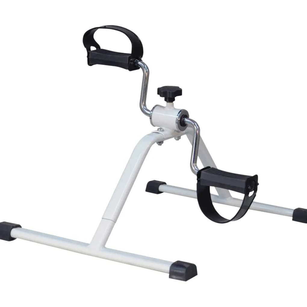 De pedalen kunnen naar voren of naar achteren worden verplaatst en de weerstand kan worden aangepast met de bovenste stelknop.