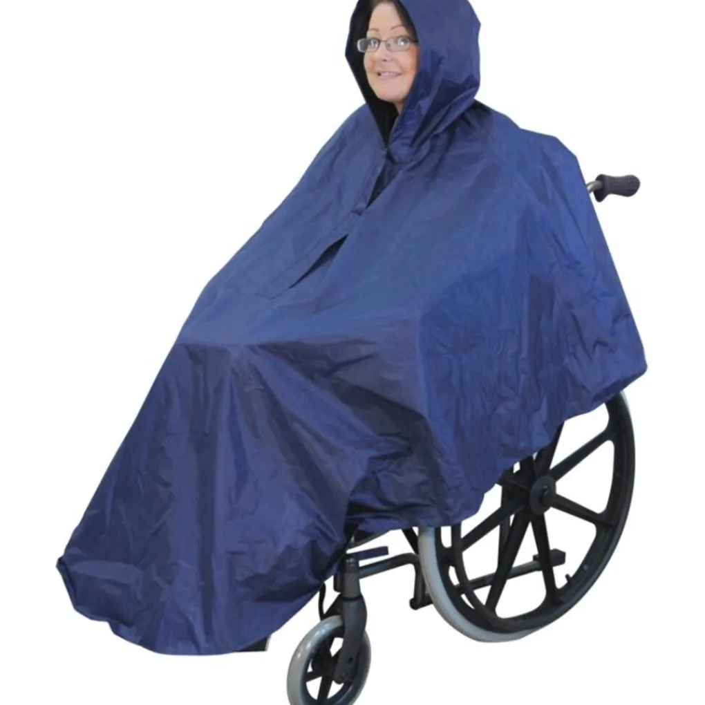 Deze Rolstoel Poncho is het ideale kledingstuk voor bescherming voor u en uw rolstoel tijdens onverwachte regenbuien. De jas is voorzien een hals rits zodat deze makkelijk uit en aan kan worden gedaan en een trekkoord kap voor een goede pasvorm. De perfecte accessoire voor rolstoelen/kleding voor rolstoelgebruikers die een grote mate van zelfstandigheid vereissen. De Rolstoel Poncho is gemaakt van 100% waterdichte stof en heeft achtersleuven voor duwhandvatten en heeft extra lengte aan de voorzijde voor een grotere dekking en bescherming voor je benen.
