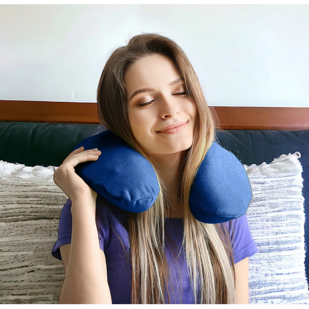 Dit kussen verminderd druk op de nek. U vouwt het kussen simpelweg om uw nek, waarna het kussen u ondersteuning geeft. Het is een zacht maar stevig kussen om spanning te reduceren voor groter comfort. Ideaal voor op vakantie, om tv te kijken of om een boek te lezen.