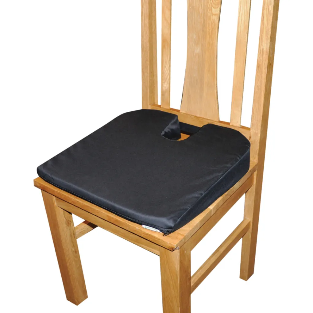 De uitsparing aan de achterzijde van het kussen zorg ervoor dat het stuitbeen of staartbotje vrij komt als u gaat zitten.