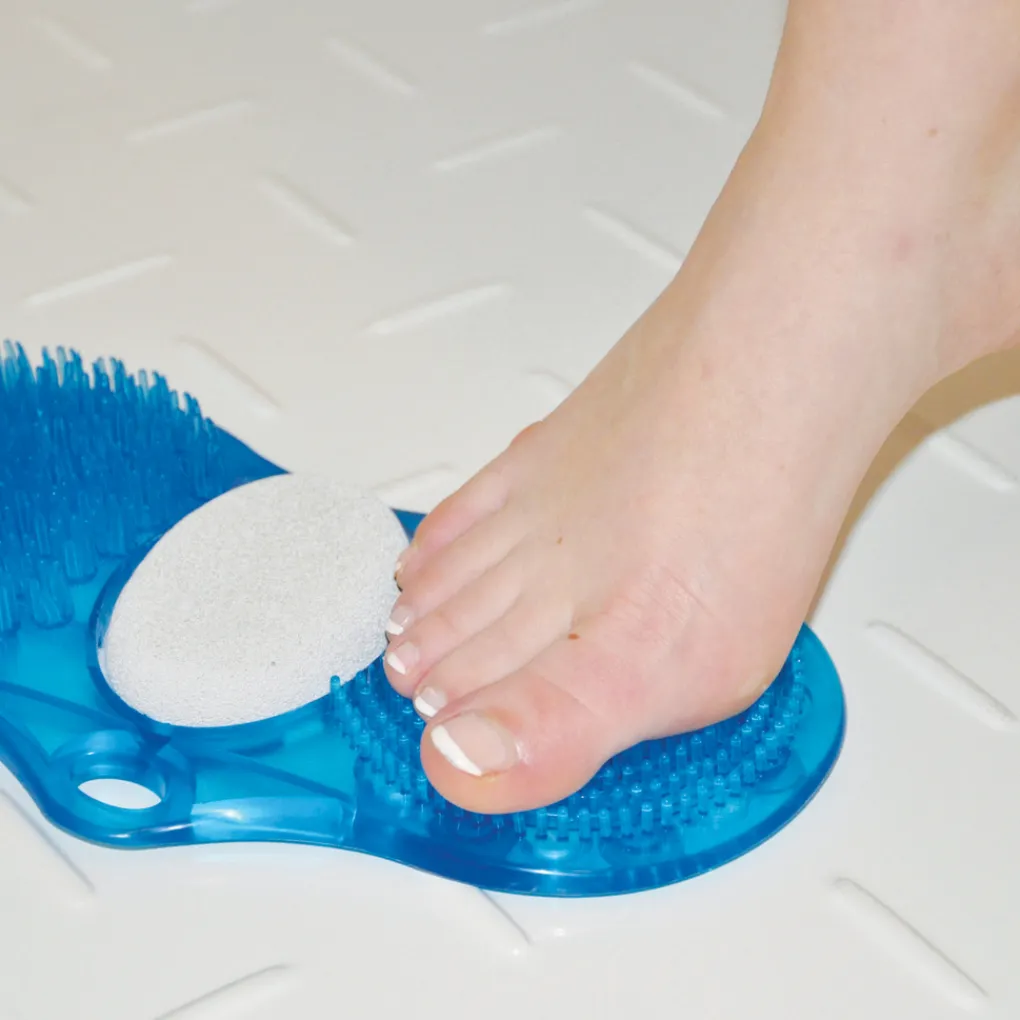 De voetenborstel is ideaal te gebruiken door mensen die niet goed kunnen bukken om de voeten schoon te maken. Door middel van de zuignappen kunt u de voetenborstel gemakkelijk bevestigen aan het bad of douche bak. De borsteltjes naast de puimsteen is te gebruiken met iedere vloeibare zeep. Vervolgens kunt u uw voeten grondig scrubtben met de puimsteen.