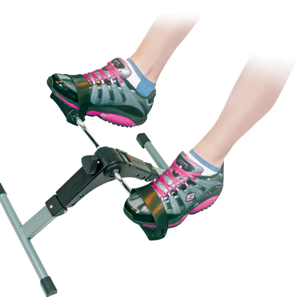 Robuuste,compacte beentrainer, die helpt om de circulatie en de spierkracht te verbeteren. Ideaal voor mensen die graag oefenen vanuit het comfort van hun eigen huis. Het kan gebruikt worden om de benen vanuit een zittende of liggende positie te trainen. Het apparaat kan ook gebruikt worden voor arm oefeningen. De digitale teller kan weergeven: