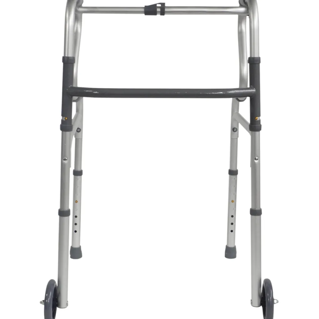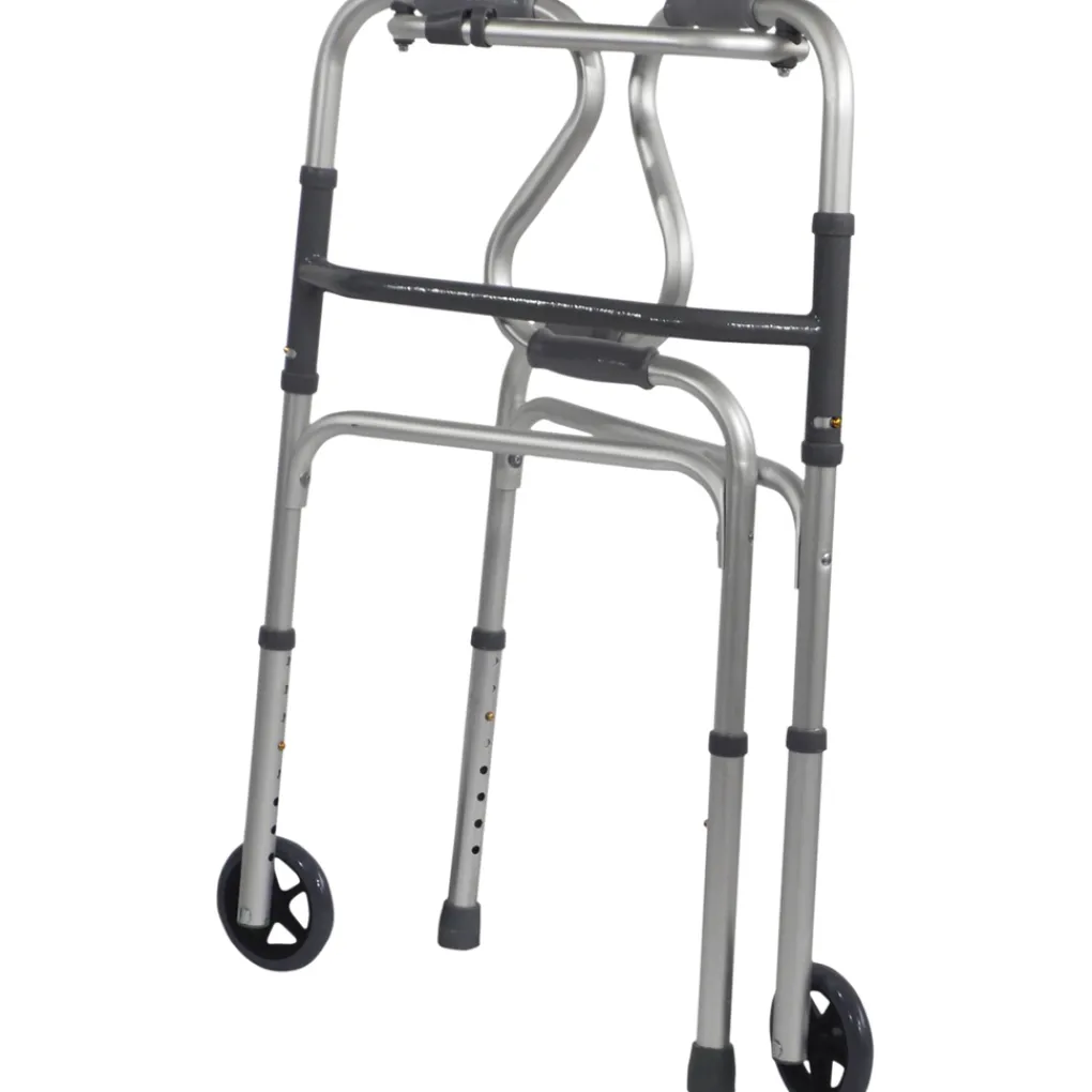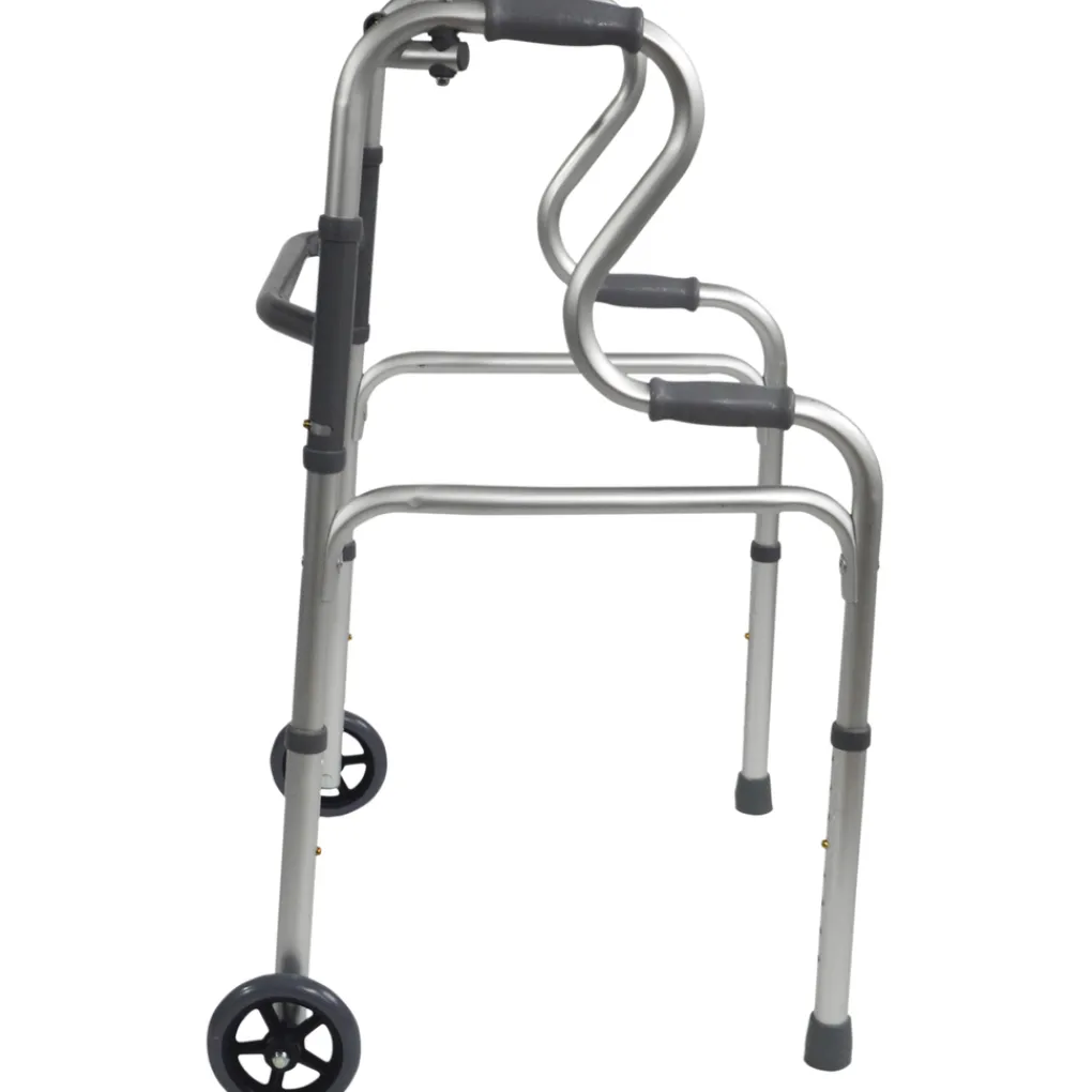 De lichtgewicht aluminium looprek met sta op functie met een brede basis voor maximale stabiliteit. Ideaal voor het helpen van personen om veilig vanuit een zittende positie op te staan. Het aluminium looprek is voorzien van zachte handgrepen, een knop vouwfunctie en in hoogte verstelbare poten. Het looprek kan worden opgevouwen wanneer het niet in gebruik is waardoor het een echte ruimtebesparend apparaat is.