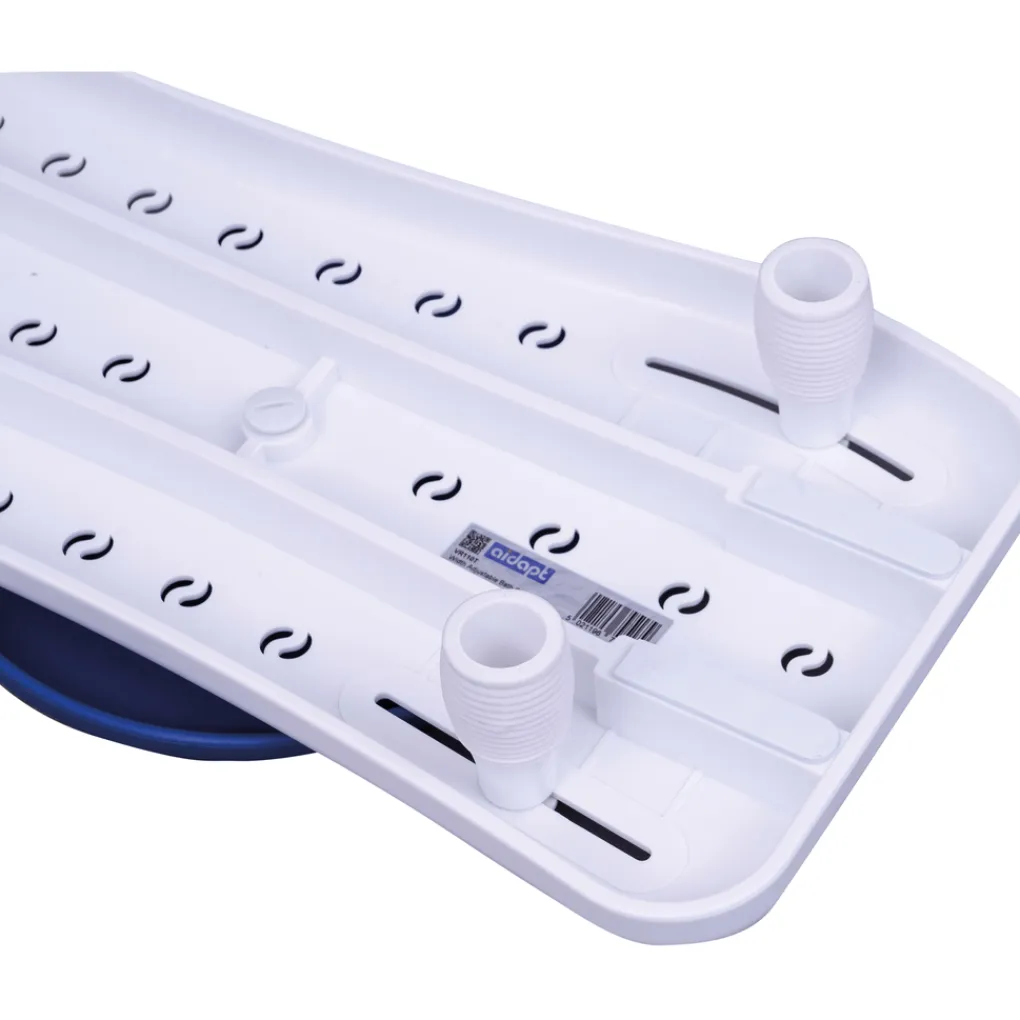 Voor maximale stevigheid en veiligheid is deze kunststof badplank vervaardigd uit één stuk en voorzien van een handvat en draaischijf om gemakkelijk te kunnen draaien. Het voorgevormde ontwerp zorgt voor extra comfort en de goed geplaatste afvoergaten zorgen ervoor dat het water snel en efficiënt wordt afgevoerd. Het Easy Self-Locating Fixing System maakt afstellen, positioneren en verwijderen eenvoudig en veilig. Compleet met easy-drain zeepbakje.