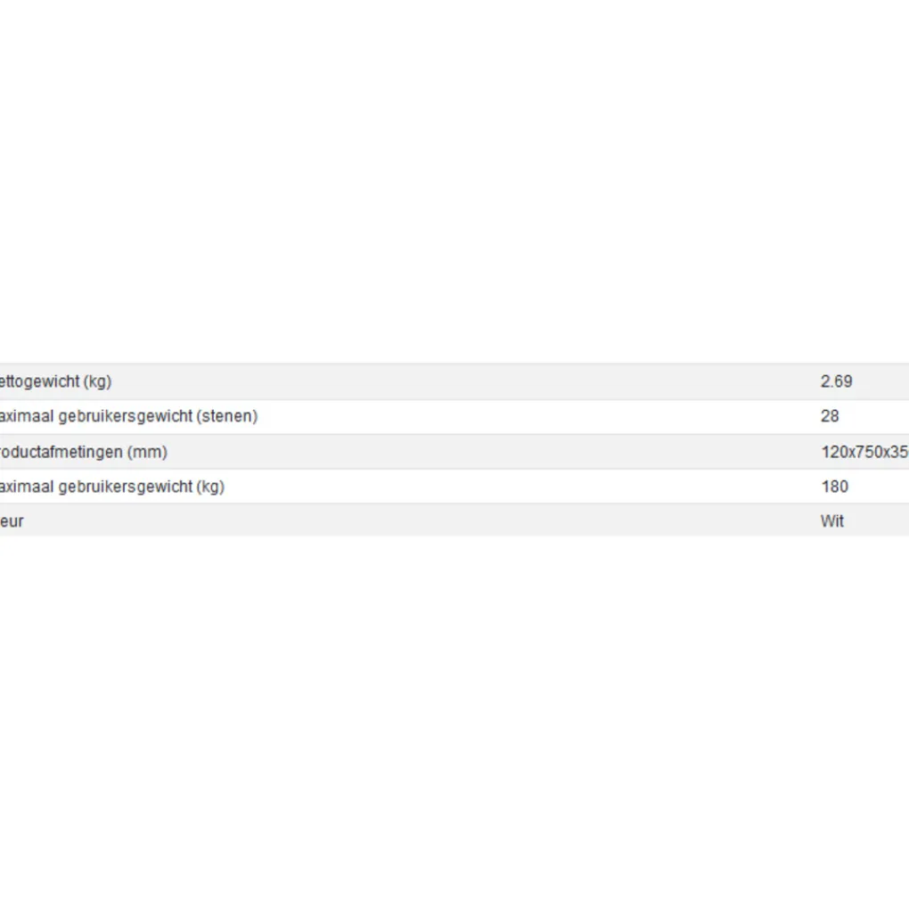 - Maximaal gebruikersgewicht 180kg