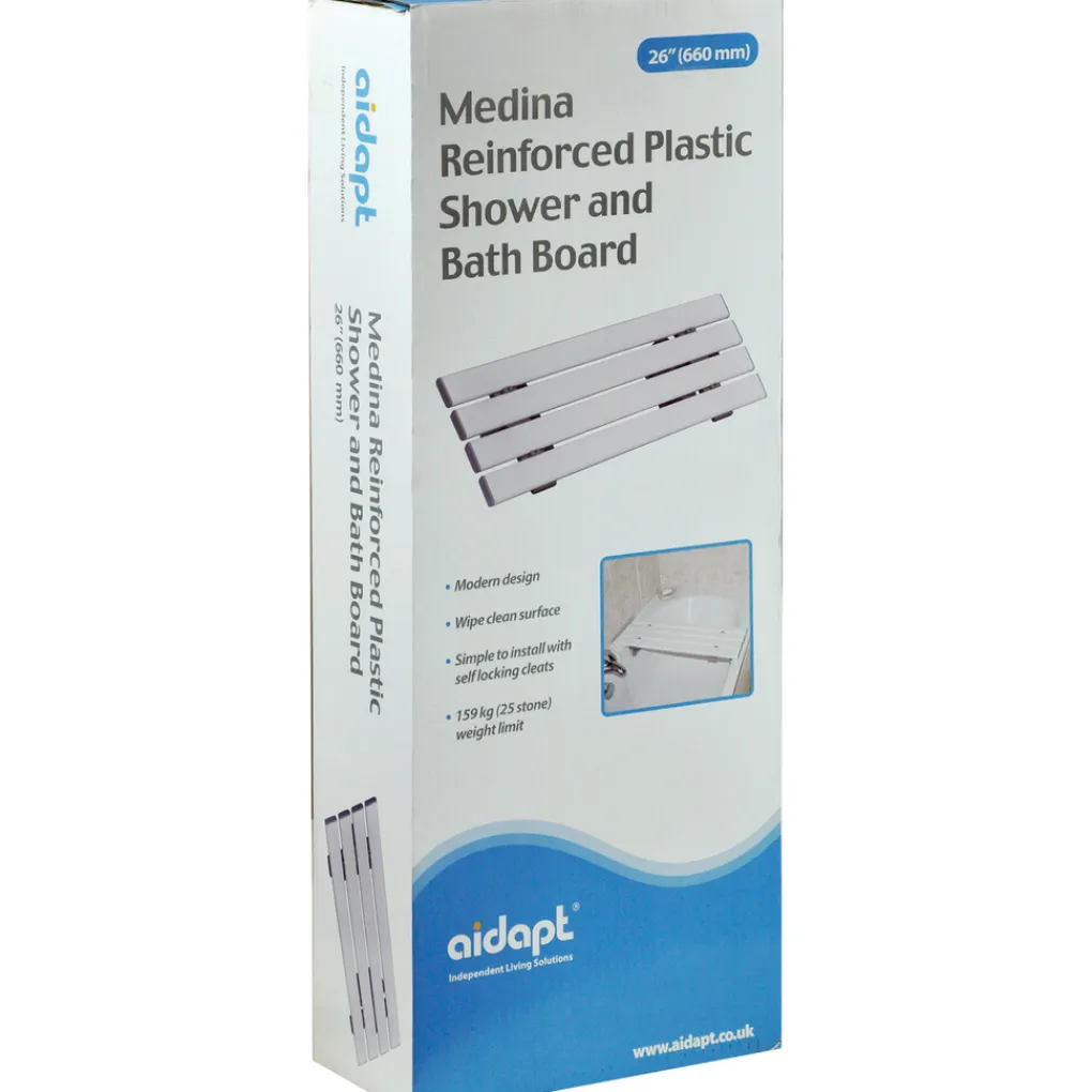 Medina, kunststof badplank van 71 cm breed. De VR118A is een hoogwaardige, versterkte kunststof badplank. Deze is zeer eenvoudig te installeren en te onderhouden. Geschikt voor gietijzer of acryl baden.