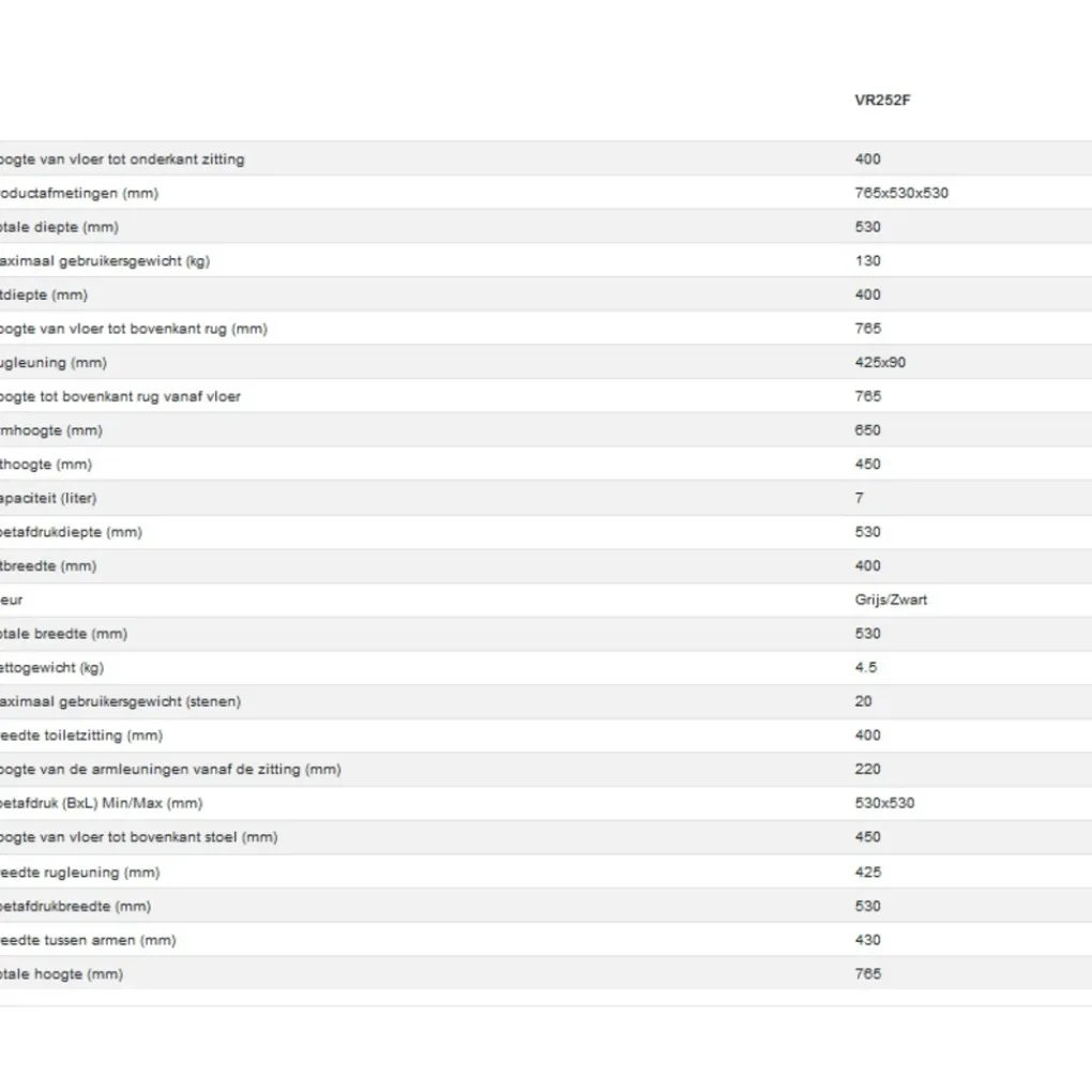 - Afmetingen (mm): 765x530x530