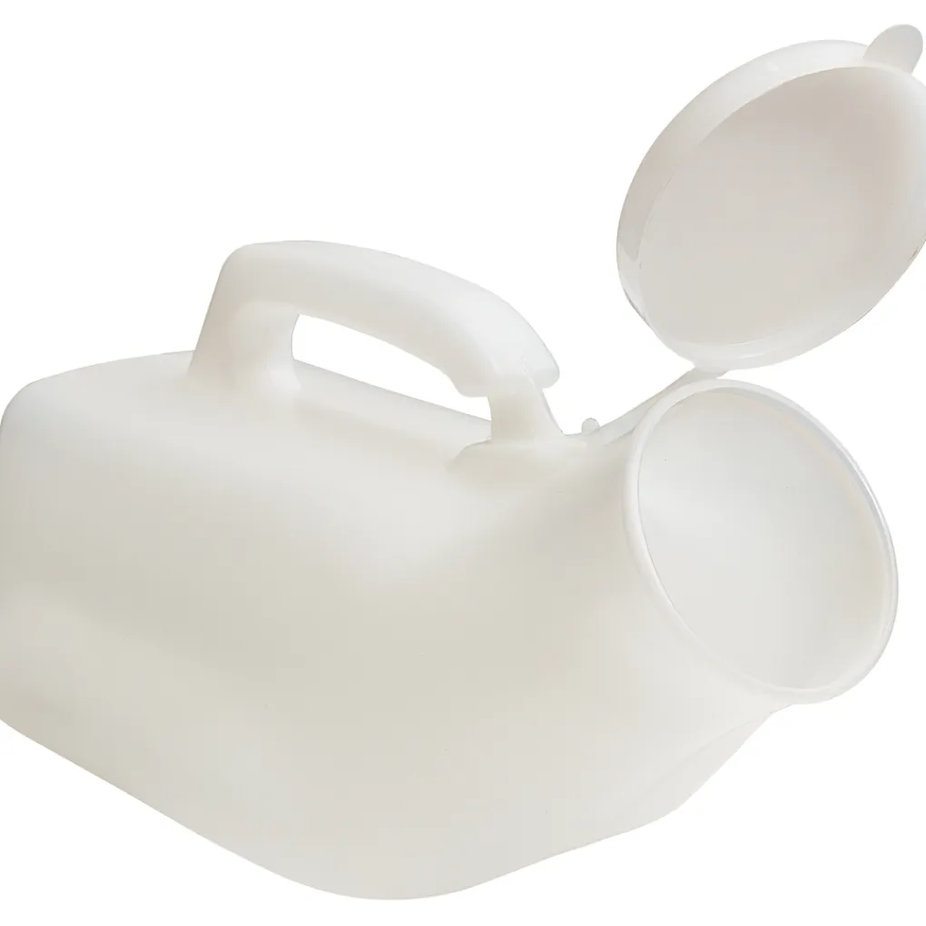 Gemaakt van ondoorzichtige, gegoten polypropyleen, het urinoir heeft een ingebouwde draaggreep en is gekalibreerd zodat u de urineproductie kunt meten. Voorzien van een deksel.