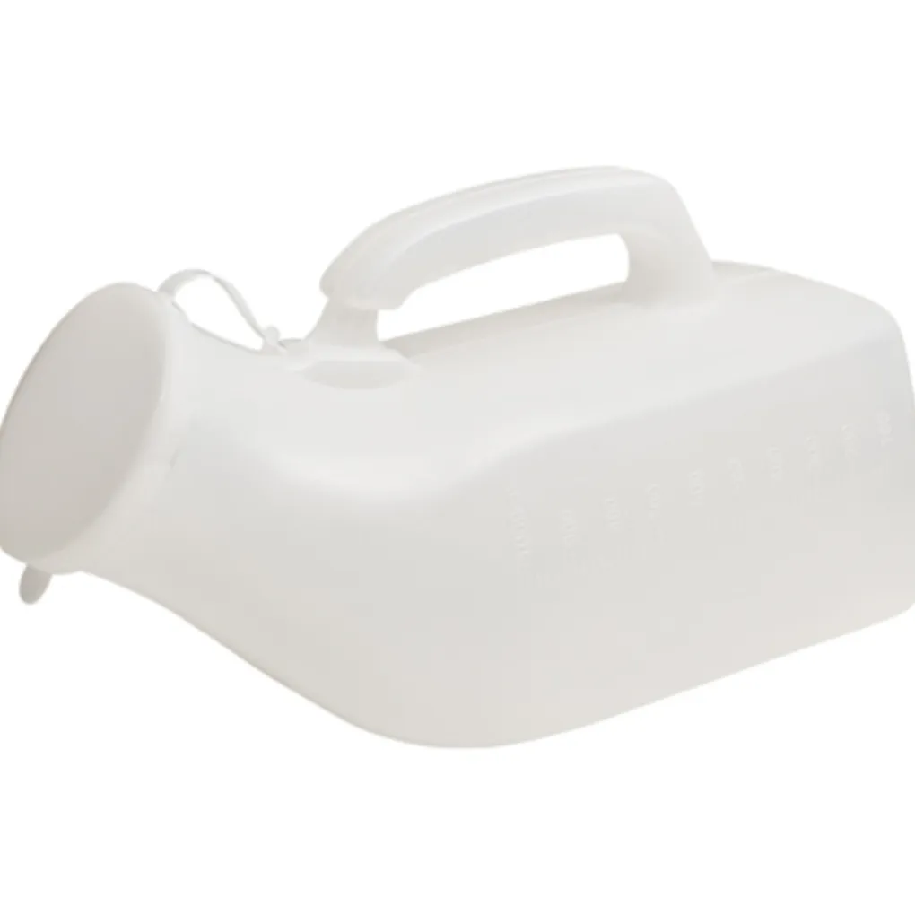 Gemaakt van ondoorzichtige, gegoten polypropyleen, het urinoir heeft een ingebouwde draaggreep en is gekalibreerd zodat u de urineproductie kunt meten. Voorzien van een deksel. 1000ml capaciteit, herbruikbaar. Ideaal voor in de slaapkamer, badkamer of tijdens lange reizen. Dit model wordt verzonden in een standaard doos zonder afbeelding.