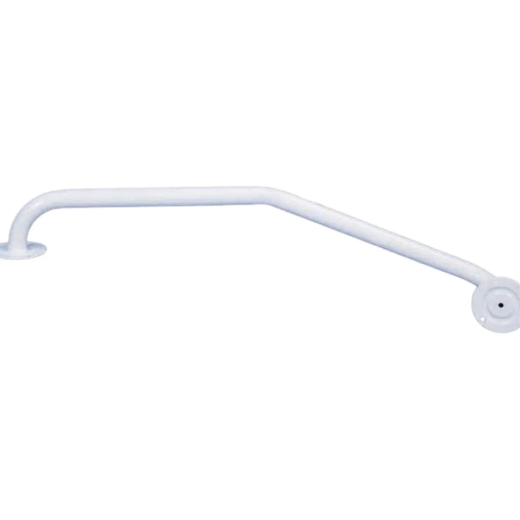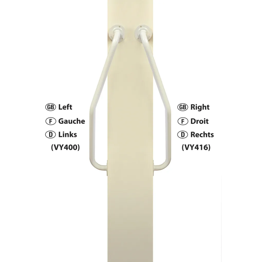 De gedraaide wandbeugel links is een gebogen handgreep die ideaal is voor de montage in portieken en trappenhuizen.