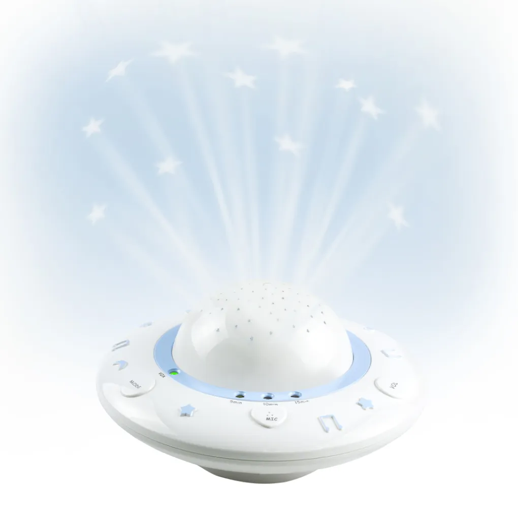 De BC-125 is een baby projector waarmee je mooie en kleurrijke beelden op het plafond van je babykamer projecteert, terwijl er rustige slaapliedjes door het kamertje klinken. Zo wordt heerlijk in slaap vallen een vaste gewoonte. De voordelen van de BC-125 baby projector: