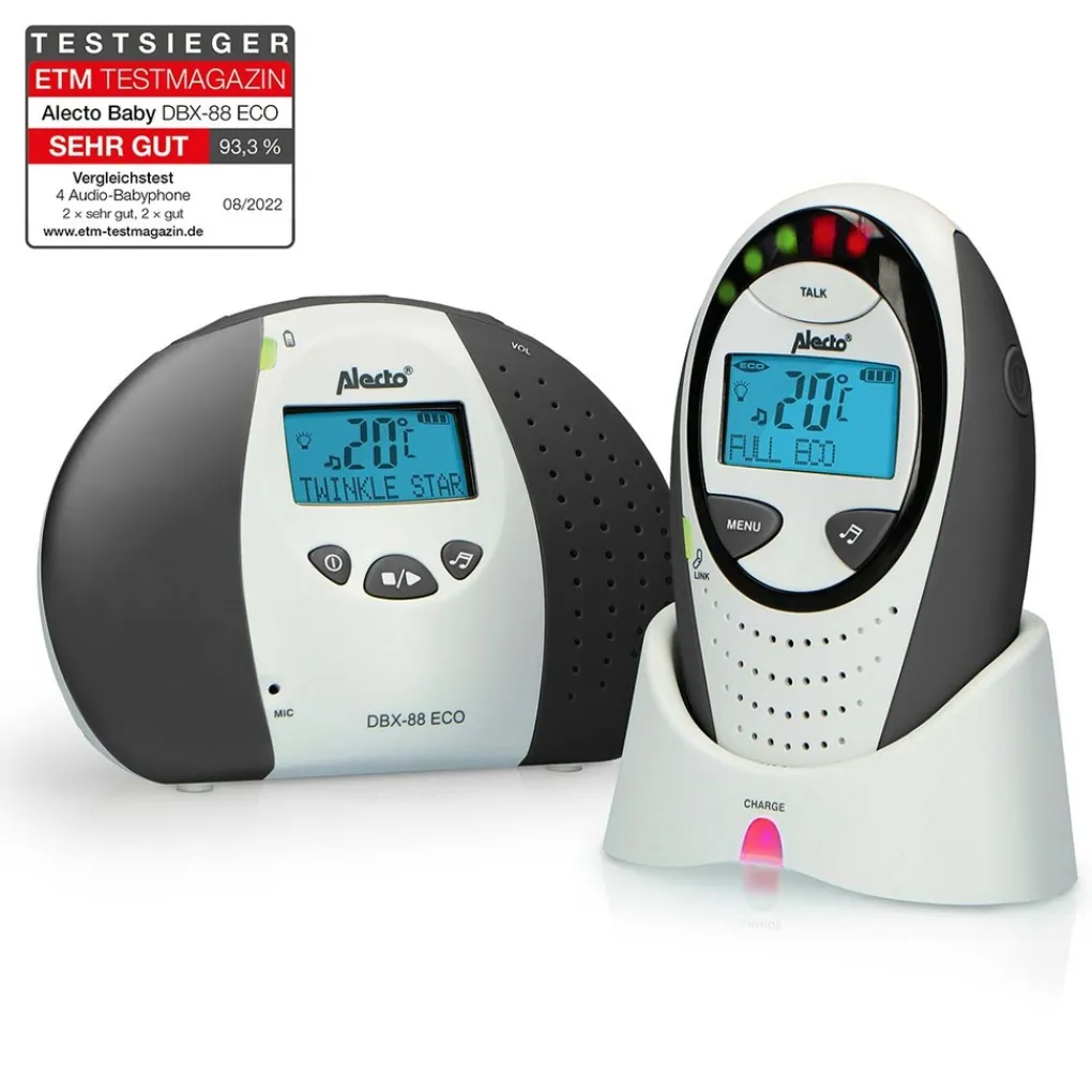 Wat kan de beste babyfoon allemaal?Uiteraard biedt deze beste babyfoon de basisfunctionaliteit die je mag verwachten van iedere babyfoon: een veilige audioverbinding met de slaapkamer van je kind op het moment dat het nodig is of op het moment dat jij daar even zin in hebt. Maar de DBX-88 LIMITED biedt veel meer. Zo kun je op afstand terugpraten om je kindje gerust te stellen of in slaap te zingen. Op de ouderunit kan je zien hoe warm het in het kamertje is, en schakel je op afstand een nachtlampje of slaapliedje in of uit. Het veilige gevoel van contact en controle.Wat zit er in de doos?