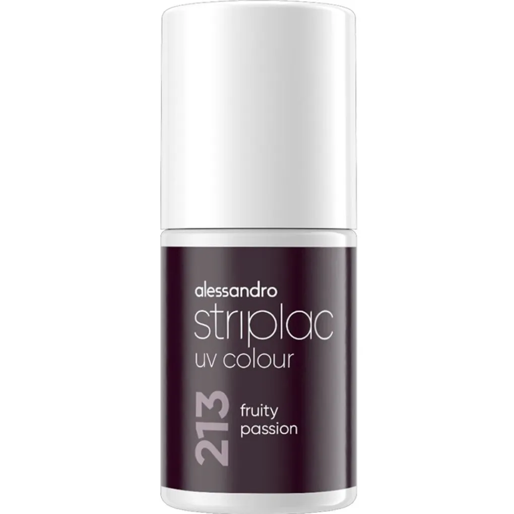 Alessandro Striplac UV Colour 213 Fruity Passion Nagellak is een rijke, donkerbruine tint met een elegante roodachtige gloed. Deze diepe, warme kleur straalt kracht en verfijning uit en is perfect voor een stijlvolle manicure.