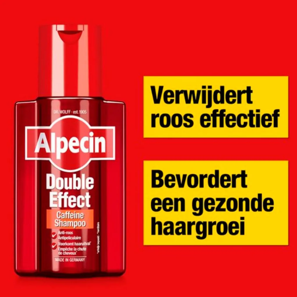 Ga haaruitval en roos tegen met Alpecin Dubbel-Effect Shampoo. De shampoo maakt je hoofdhuid vrij van roos en zorgt ervoor dat je haar langer door blijft groeien.