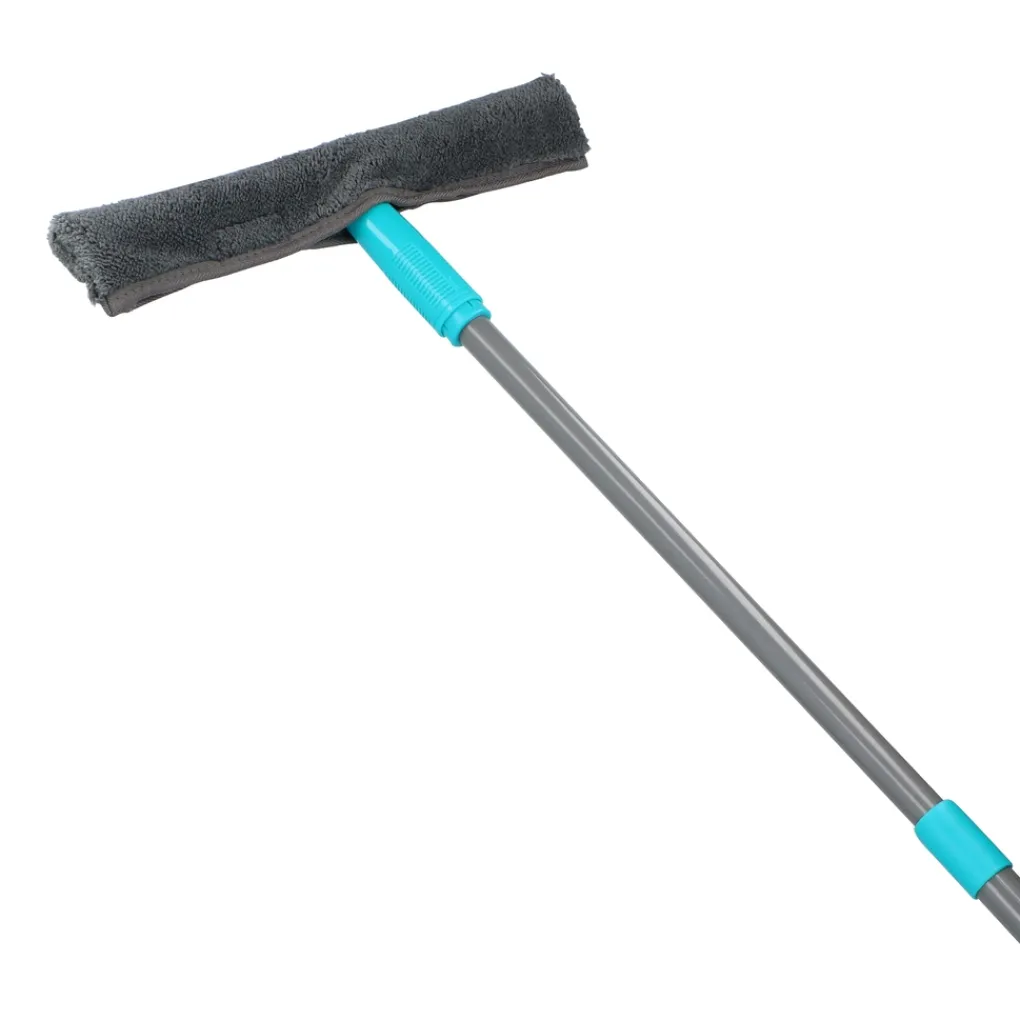 Schoonmaken is vaak een moetje. Je wilt dat je huis er spic en span uitziet zodat je zelf lekker kunt ontspannen in een schoongemaakt huis. Ramen lappen is zo’n klusje waar je soms wel eens tegenop kunt zien. Echter, als de ruiten gedaan zijn, heb je er veel voldoening van en lijkt je huis ineens weer een stuk lichter en ruimtelijker. Met deze 5-delige ramenreiniger van Alpina maak je al je ramen snel en effectief stralend schoon.Grondige schoonmaakbeurtDeze handige set bevat alles om je ramen een grondige, haast professionele, schoonmaakbeurt te geven. Je krijgt: 1 telescopische steel, 1 trekker, 1 ramenreiniger en 2 microvezeldoeken. De steel kun je verlengen van 57 tot 130 centimeter zodat je overal gemakkelijk bij kunt. Ook als de ramen hoog zijn of je vanaf binnen de buitenkant van het glas wilt schoonmaken. De ramenreiniger en trekker kunnen gemakkelijk verwisseld worden zodat je lekker snel door kunt werken. De ramenreiniger is lichtgewicht en gemakkelijk te manoeuvreren.Sneller, beter en hygiënischer schoonMicrovezel heeft heel veel voordelen ten opzichte van traditionele materialen. Je hoeft geen of nauwelijks schoonmaakmiddelen te gebruiken en alles is veel sneller,beter en hygiënischer schoon. Microvezel neemt heel veel vocht op en trekt het vuil als het ware aan. Daarom gaat schoonmaken met microvezelmaterialen veel beter.