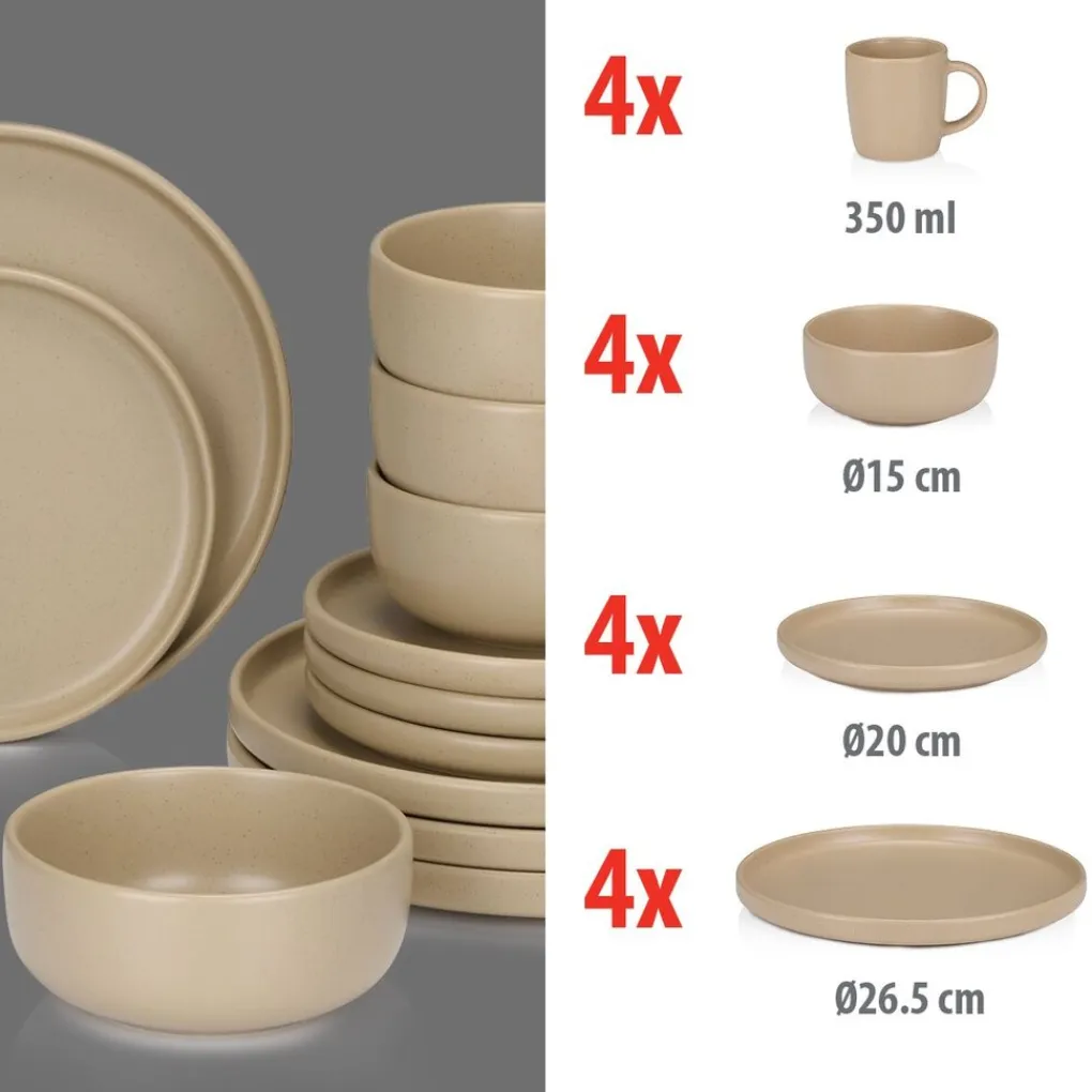 In de serviesset van alpina zitten 4 ontbijtborden, 4 dinerborden, 4 kommen en 4 mokken – perfect voor een gezelschap van in totaal 4 personen. Uiteraard kun je de set altijd uitbreiden om bij een groter gezelschap te laten passen. Specificaties alpina serviesset 16-delig zand