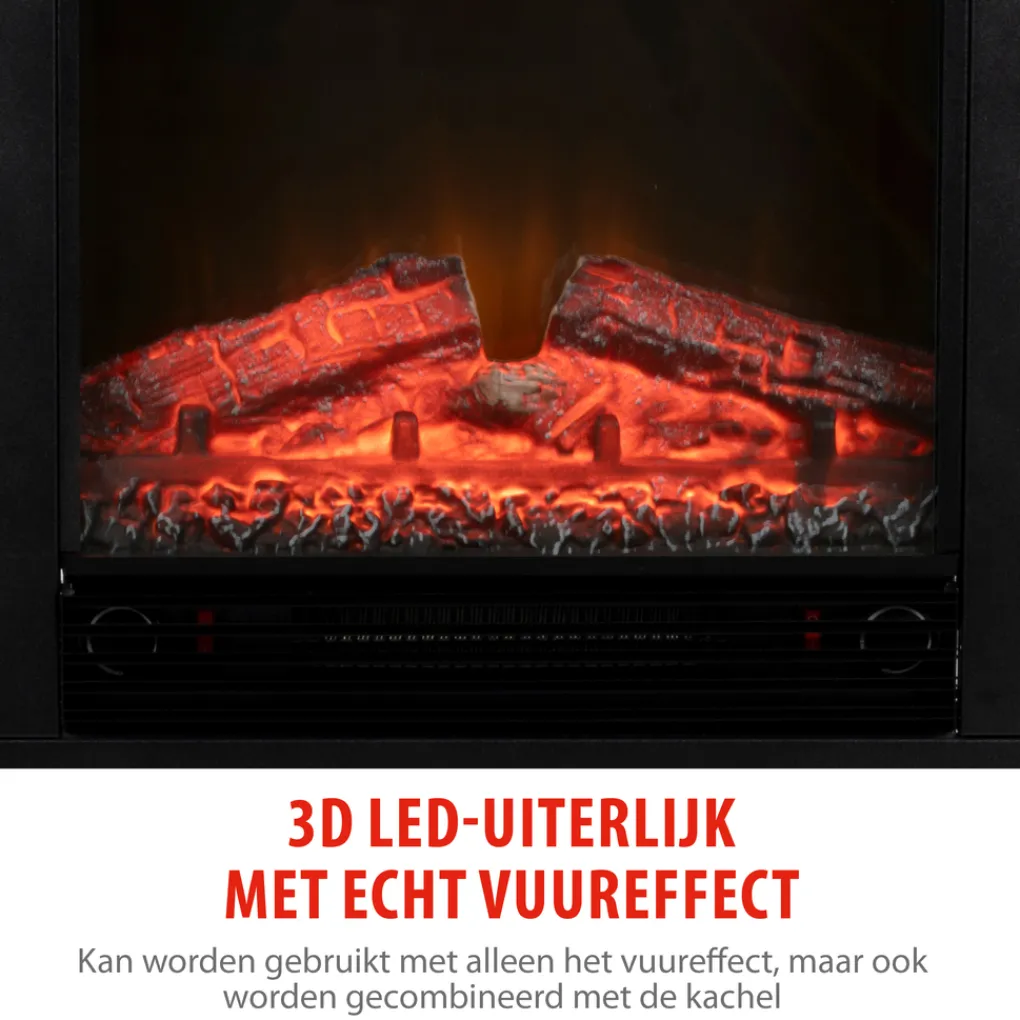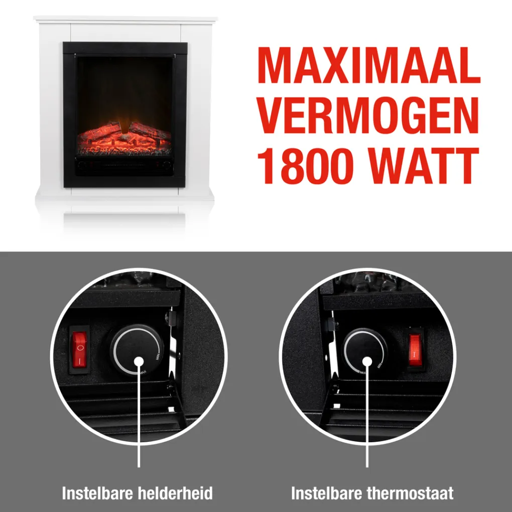 Deze elektrische haard verwarmt met zijn 1800 Watt vermogen zeer krachtig en geeft veel warmte af. Er zit een instelbare thermostaat op wat betekent dat als het warm genoeg is in de kamer, de kachel afslaat. Er zit tevens een oververhittingsbeveiliging op en de haard is GS-goedgekeurd door TÜV. Heb je het warm genoeg en wil je alleen gezelligheid dan kan dat ook door alleen het vuureffect in te stellen. Zo kun je genieten van het gezellige haardvuur zonder dat het al te warm wordt in de ruimte. Specificaties Elektrische Sfeerhaard met Mantel Geneva: