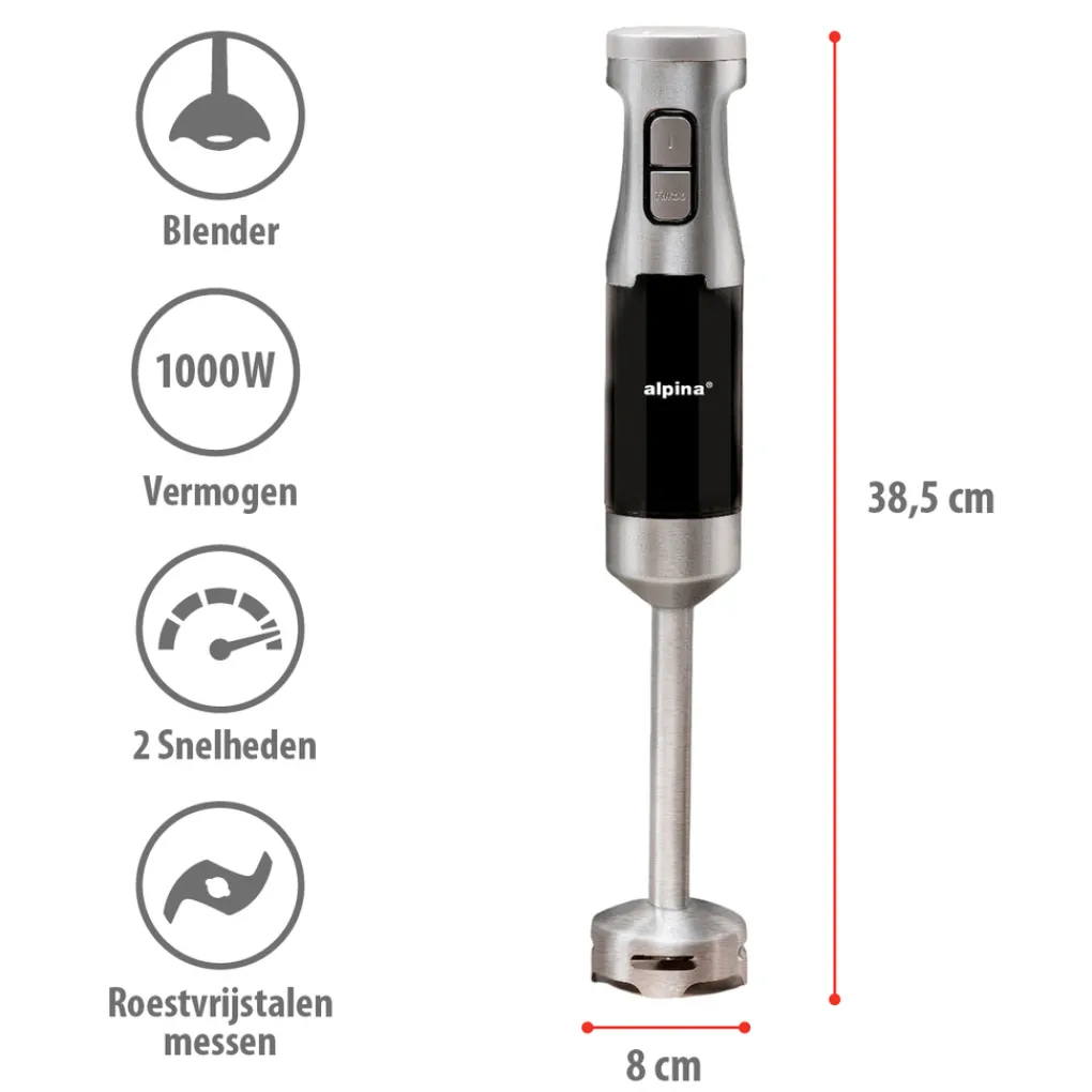 Specificaties alpina staafmixer met maatbeker 1000W