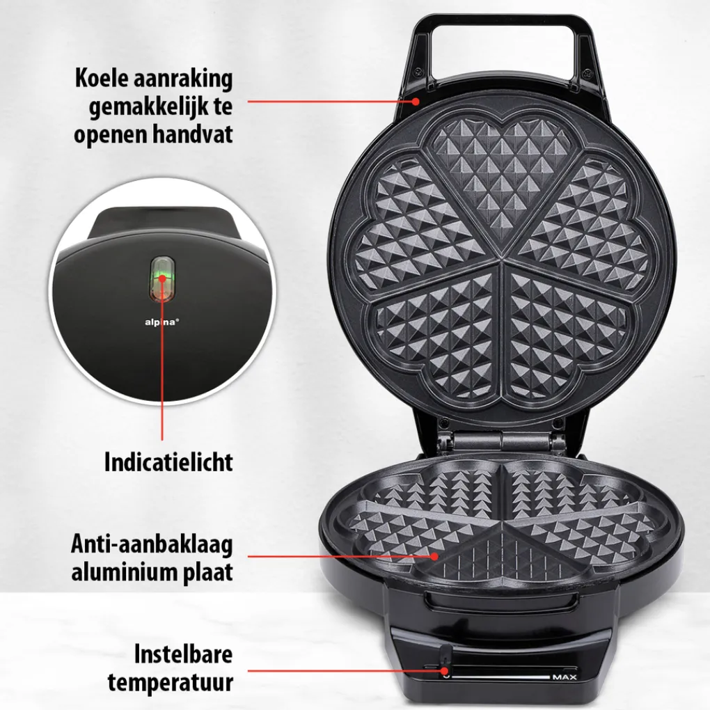 Wafelijzer met indicatielicht een aanpasbare temperatuur
