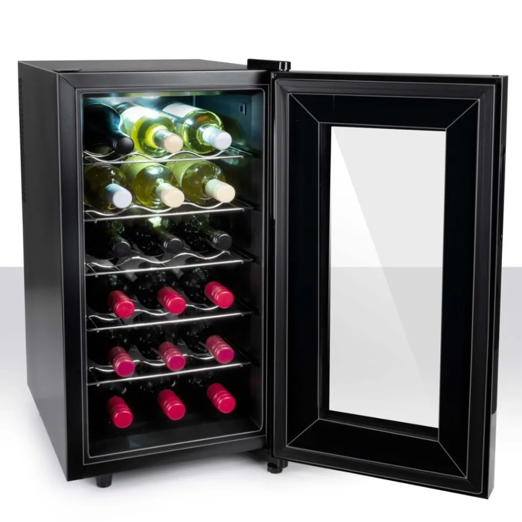 De wijnkoelkast van alpina biedt ruimte voor 18 wijnflessen verdeeld over 5 rekken en de bodem van de wijnkast. Op elk wijnrek is er ruimte voor 3 flessen om horizontaal te liggen. Het is belangrijk dat je wijnflessen op deze manier kunt bewaren omdat je zo voorkomt dat de kurk van een wijnfles uitdroogt. Wanneer dat gebeurd kan er namelijk zuurstof bij de wijn komen en zal deze sneller vergaan en ondrinkbaar worden.