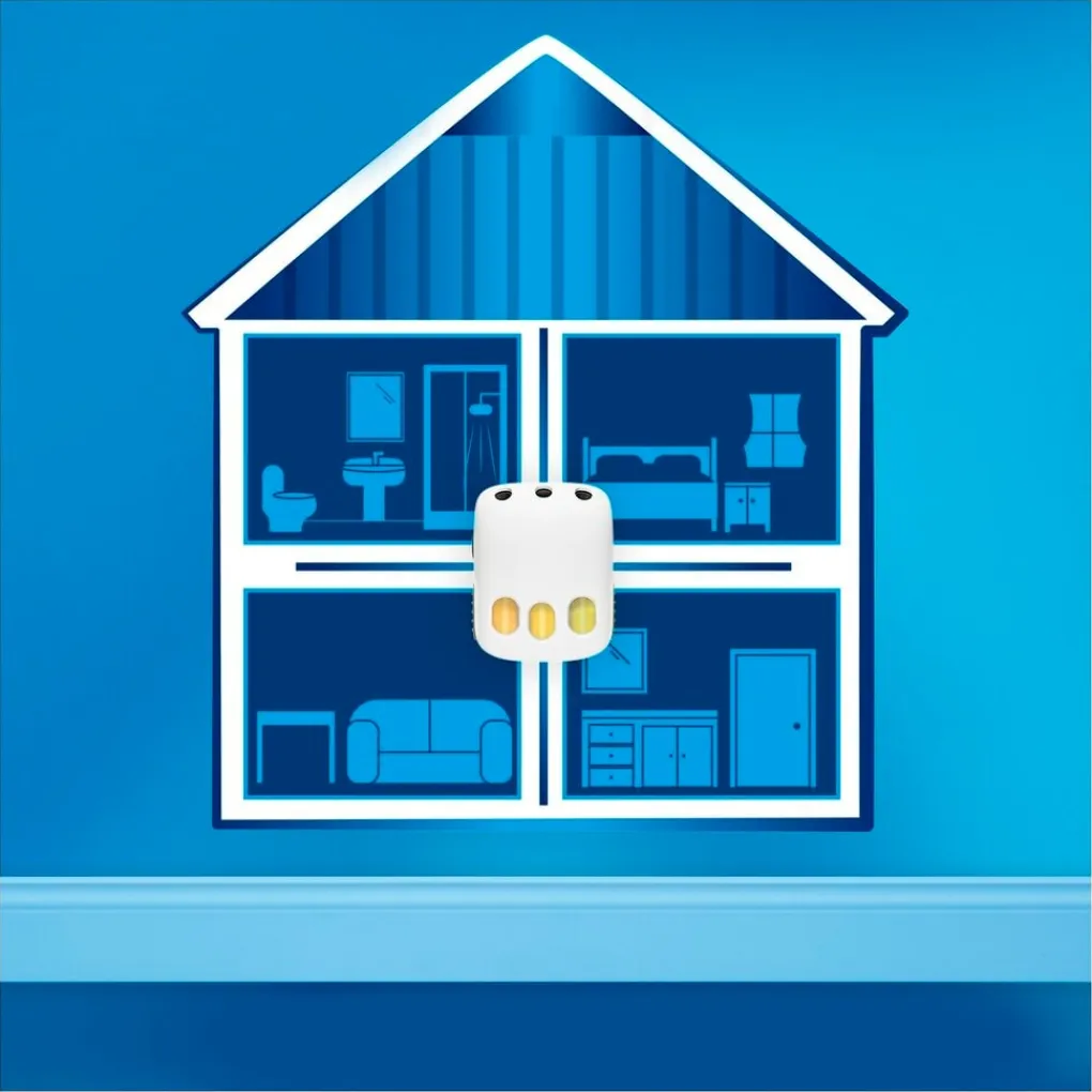 Verwijder alle doppen. Plaats navulling. Plaats rechtop. Het afwisselende lichtje geeft de actieve geur aan. Navulling vervangingssignaal. Altijd de navulling en het apparaat rechtop houden. Alleen gebruiken zoals aangegeven. Verwijder dopjes van de navulling. Verwijder uit het stopcontact alvorens de navulling in het apparaat te plaatsen. Plaats altijd het apparaat in het stopcontact met de flesjes aan de onderkant. Niet bedekken of achter een gordijn plaatsen. Laat boven de luchtverfrisser zeker 50 cm vrije ruimte. Niet bedekken of achter een gordijn plaatsen. Niet gebruiken met verlengsnoeren of stekkerdozen. Verwijder het apparaat uit het stopcontact en vervang de navulling na volledig gebruik.