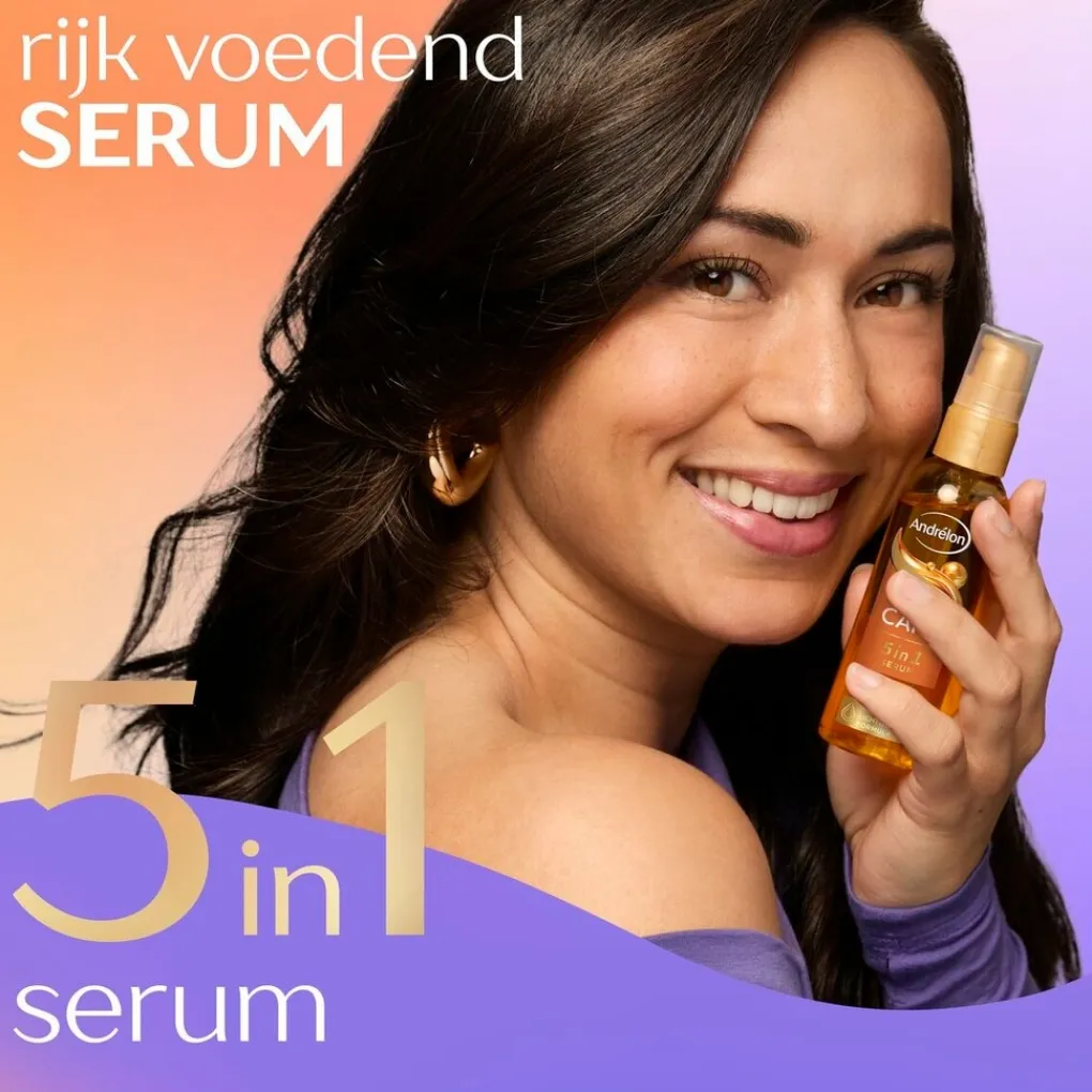 Het Andrélon Oil & Care 5-in-1 Serum biedt vijf voordelen in één krachtige formule en bestrijdt pluis, ontwart, verzorgt, temt fly-aways en laat je haar extra glanzen.