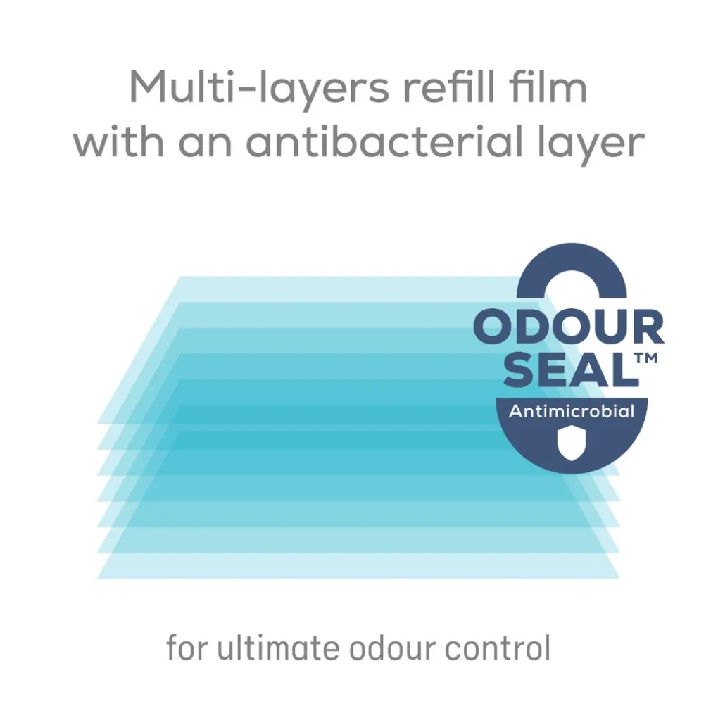 Het Angelcare Nappy Disposal System maakt gebruik van de unieke OdourSeal™ technologie, dat er perfect voor zorgt dat nare geurtjes niet de luieremmer-zakken uitkomen.