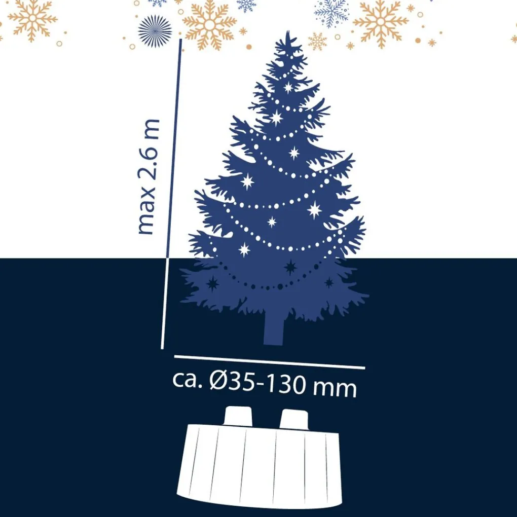 - Stevige constructie: Biedt stabiliteit voor kerstbomen tot 2,6 meter.