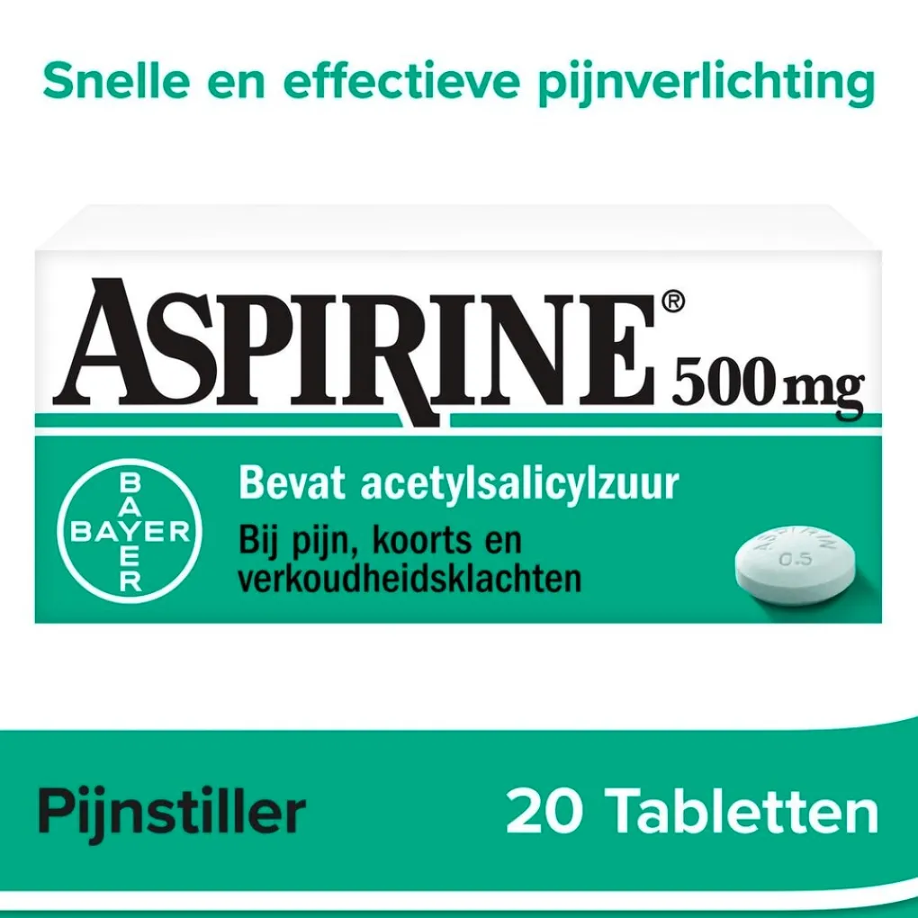 Aspirine 500mg Tabletten werken pijnstillend, koortsverlagend en ontstekingsremmend.