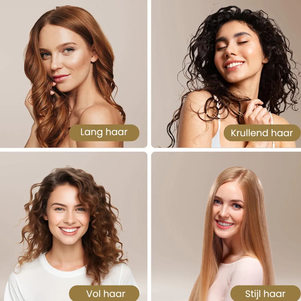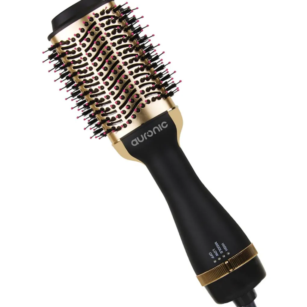 Auronic 3-in-1 Föhnborstel De 3-in-1 föhnborstel combineert een föhn, krulborstel en stijltang in één. Je droogt en stylet je haar tegelijkertijd. Geen geklungel met een borstel in de ene hand en een föhn in de andere. Het ovale ontwerp is ideaal voor het creëren van slag of meer volume. De flexibele nylon pins en borstelharen zorgen voor zijdezacht haar zonder klitten. Bovendien geeft het 2 meter lange 360° meedraaiend snoer je volledige bewegingsvrijheid.
