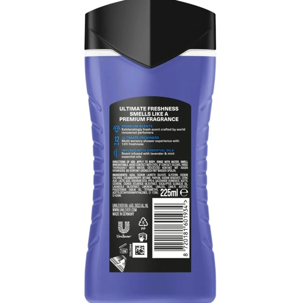 De Axe Fine Fragrance Blue Lavender Douchegel laat je tot 12 uur lang ruiken als een luxueus parfum. De douchegel heeft de geur van lavendel en munt en is ontworpen door gerenomeerde parfumeurs.