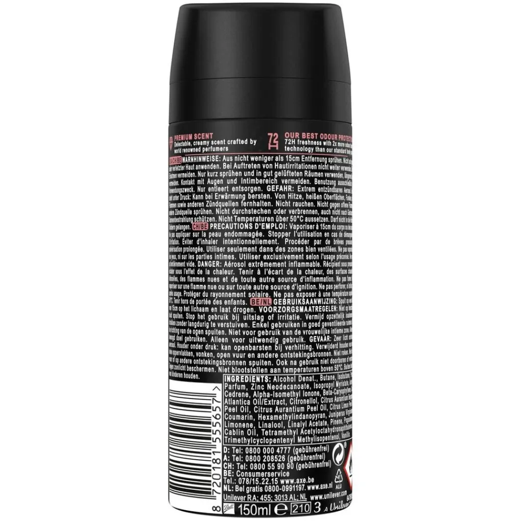 Bij Axe geloven ze dat een van de sleutels tot aantrekkingskracht een onweerstaanbare geur is. Daarom zijn ze toegewijd om je de beste tools te geven om ervoor te zorgen dat, wanneer de gelegenheid zich voordoet, jij op je best ruikt. Van deodorant bodyspray tot douchegel, van antitranspirant spray tot deodorant voor mannen, Axe doet er alles aan om ervoor te zorgen dat aantrekkingskracht voor iedereen is. Met Axe huidverzorgingsproducten ben je er klaar voor. Smell ready!