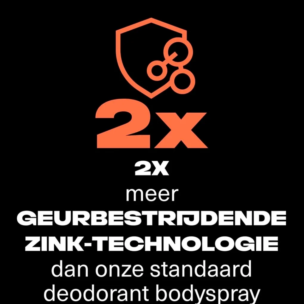 • Twee keer meer geurbestrijdende zink-technologie dan de standaard Axe deodorant