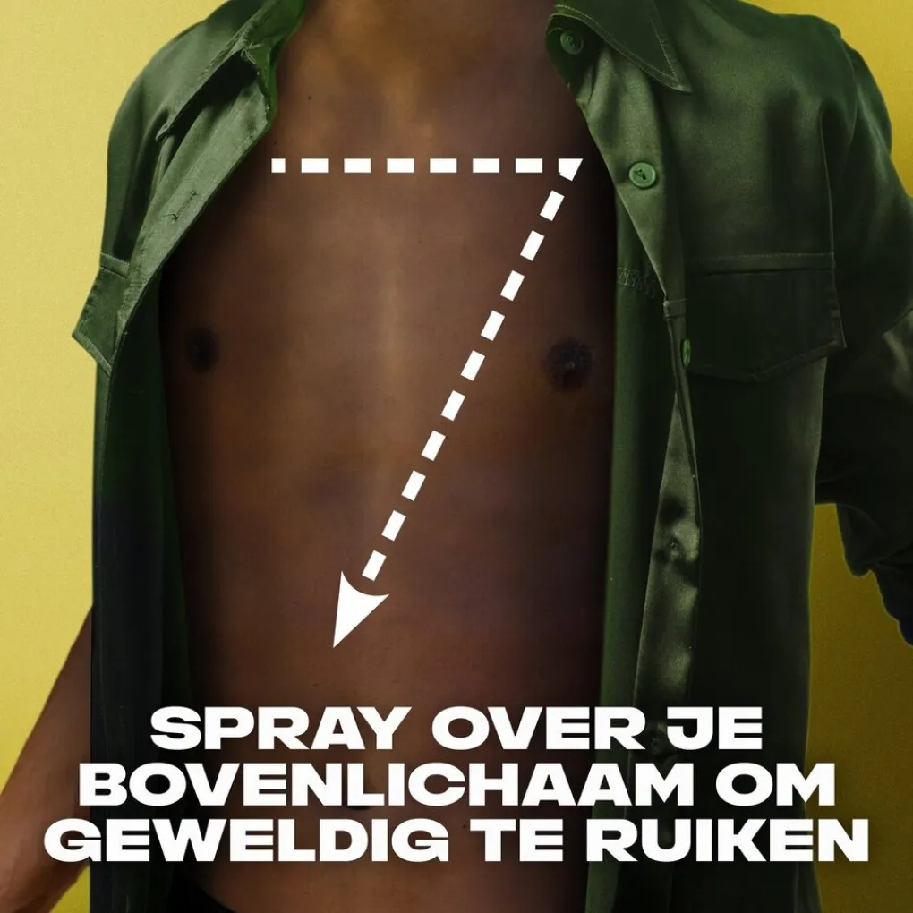 • Spray over je bovenlichaam om onweerstaanbaar te ruiken