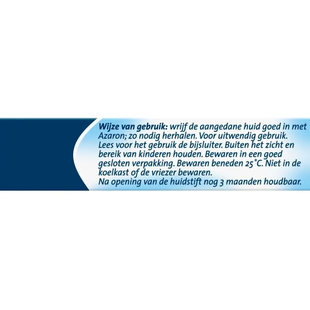 Wijze van gebruik: wrijf de aangedane huid goed in met Azaron; zo nodig herhalen.