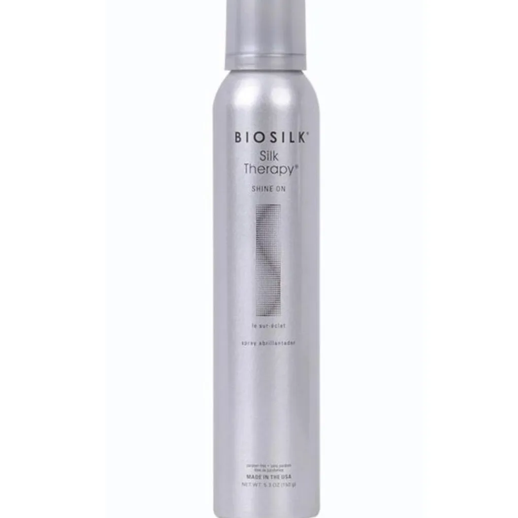 BioSilk Silk Therapy Shine On is onderdeel van de Silk Therapy System lijn van BioSilk. De BioSilk Therapy System lijn is een assortiment, verrijkt met zijde, van voedende producten voor het haar. Omdat zijde grotendeels uit dezelfde aminozuren bestaat als menselijk haar, is het mogelijk om deze aminozuren diep in het haar achter te laten. De lijn is speciaal ontwikkeld voor normaal tot droog haar. De BioSilk Silk Therapy Shine On, verrijkt met zijde, is een droge lichtgewicht glansspray. Het haar krijgt een intense glans zonder het te verzwaren. Verkrijgbaar in 150 gr.