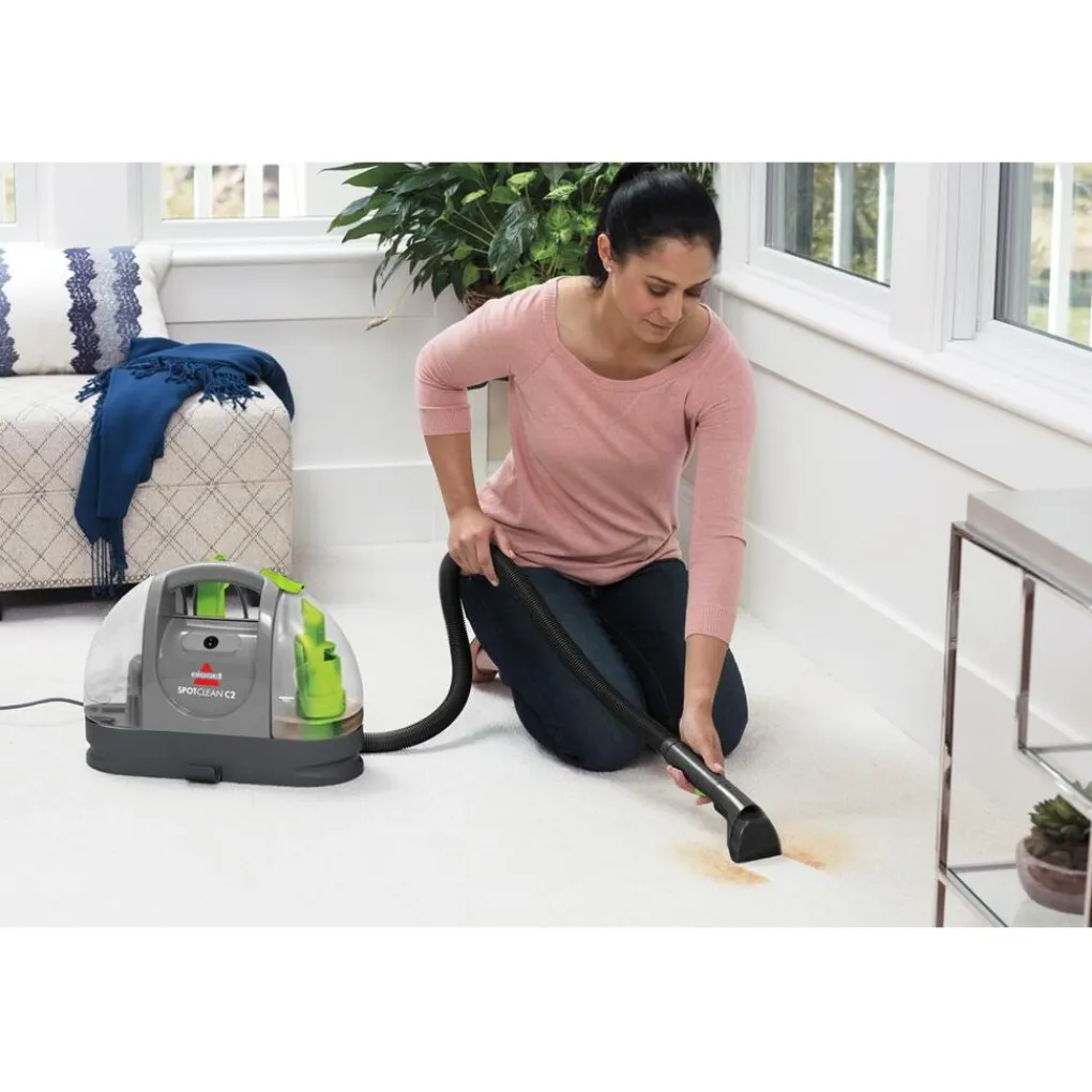 De BISSELL SpotClean C2 is ontworpen voor snelle en grondige reiniging van tapijten, meubels en auto-interieurs. Dankzij het Triple Action™ systeem sprayt, schrobt en zuigt het apparaat hardnekkige vlekken en vuil effectief weg.Krachtige Prestaties en Gebruiksgemak