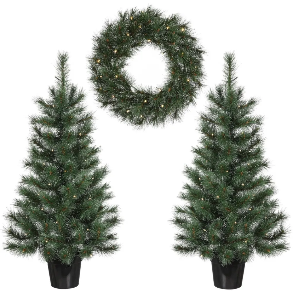 - Twee sfeervolle boompjes en een bijpassende krans voor een complete entree make-over