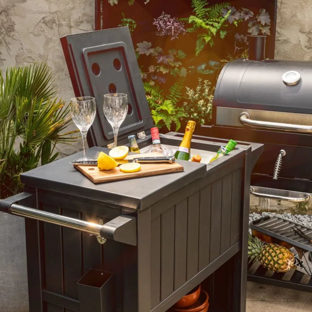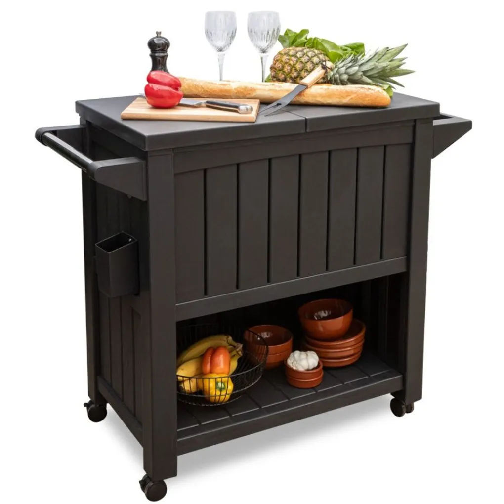 Organiseert u graag een gezellige barbecue of feestje in de tuin? Dan is de BluMill BBQ tafel onmisbaar in uw tuin deze zomer! Met de BluMill BBQ bijzettafel inclusief koelvak creëert u eenvoudig een buitenkeuken in uw eigen tuin. Gebruik de 3-in-1 barbecuetafel op wielen als opslag, keukenwerktafel en als koeling. Daarnaast heeft de barbecuetafel een ingebouwde flessenopener inclusief handig opvangbakje voor alle doppen. Door het ruime formaat van de tafel heeft u voldoende opslag en werkruimte om een heerlijke maaltijd te bereiden voor de hele familie en/of vriendengroep. De BBQ tafel bevat 4 wieltjes, waardoor de tafel gemakkelijk te verplaatsen of op te bergen is.