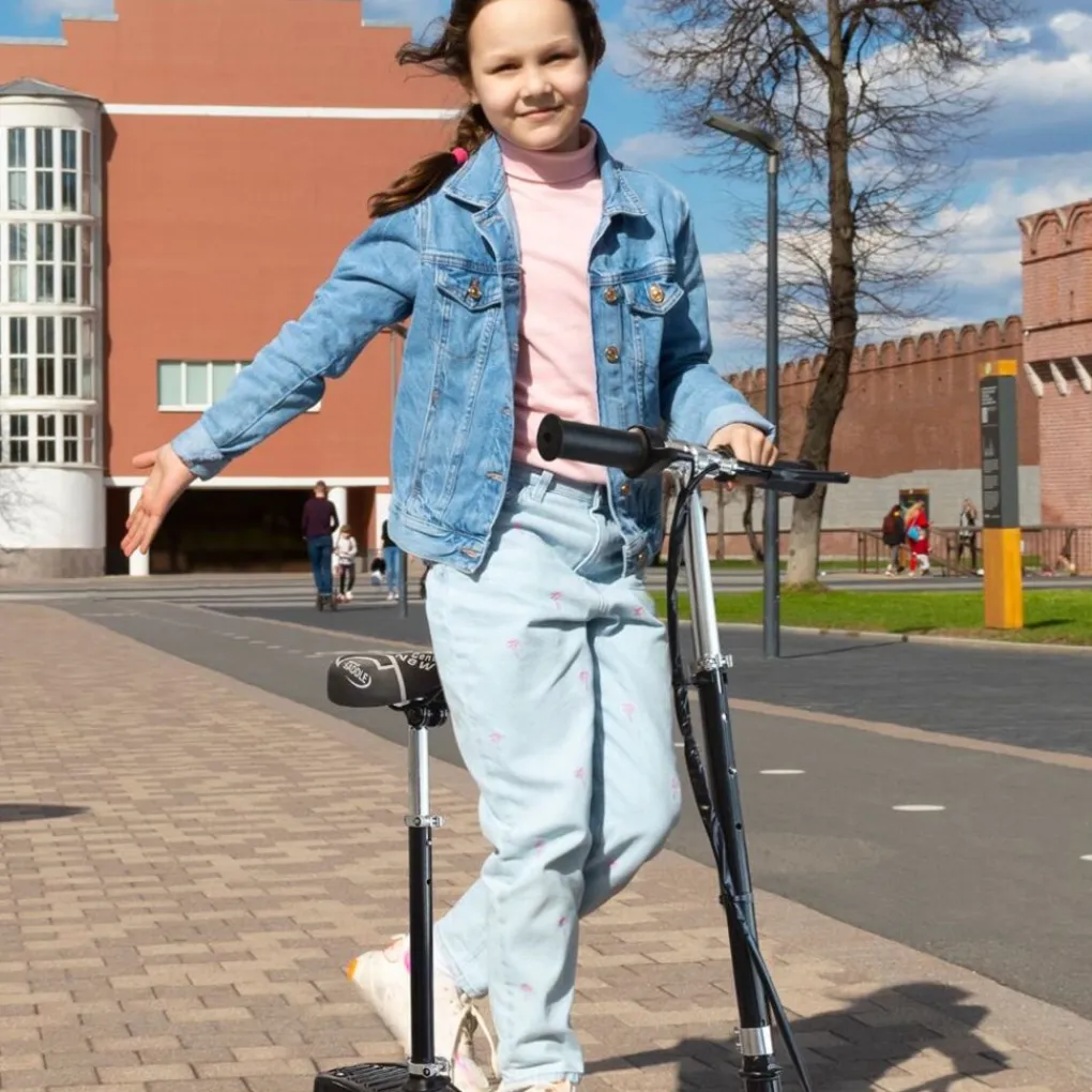 Het stuur van de BluMill Electric Step is in hoogte verstelbaar van 82 – 93 cm, zodat iedere bestuurder een fijne rijhouding heeft. De E-scooter is ook uitgerust met een comfortabele, in hoogte verstelbare zadel, waarmee het mogelijk is om te rijden in zithouding. De elektrische step heeft een stevig frame van aluminium en staal en een antislip oppervlak voor extra veiligheid. De kleine voet standaard maakt het mogelijk om de step rechtop neer te zetten. Als de elektrische step moet worden opgeborgen of meegenomen, kan hij snel en gemakkelijk worden samengevouwen door het inklapmechanisme. Zo bergt u hem makkelijk op in de schuur of garage, of neemt u hem compact mee onderweg.