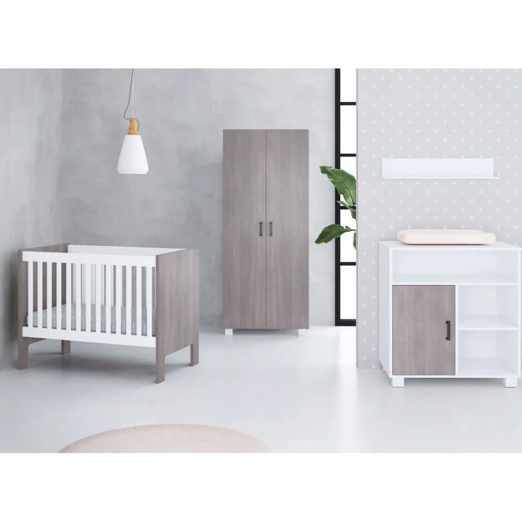 Deze kledingkast is ideaal te combineren met andere meubels uit de Born Lucky Fresno Wit Grijs collectie, zoals het babybed en de commode. Zo kun je eenvoudig een harmonieuze en stijlvolle babykamer creëren die zowel praktisch als mooi is. Kies voor de Born Lucky Kledingkast Fresno en geniet van een functionele en trendy inrichting die meegroeit met jouw kindje.