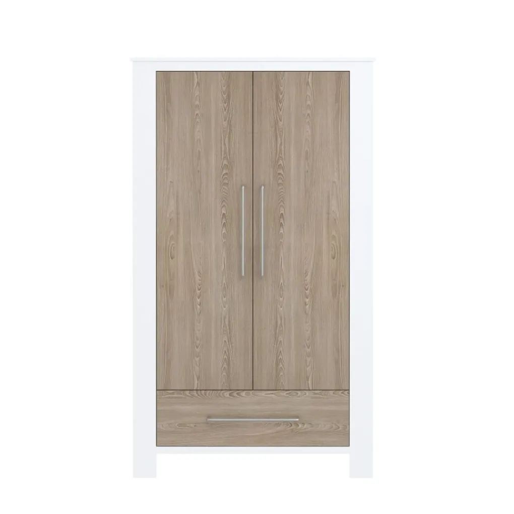 De Born Lucky Kledingkast Noël is gemaakt van wit gelakte meubelplaten, afgewerkt met deco fineer voor een verfijnde uitstraling. De combinatie van deze hoogwaardige materialen zorgt voor duurzaamheid en een elegante look. Met afmetingen van 180 x 105 x 53 cm past de kast perfect in vrijwel elke ruimte. Creëer een harmonieuze babykamer door de kledingkast te combineren met andere meubels uit de Noël-collectie en geniet van een stijlvolle, praktische inrichting.