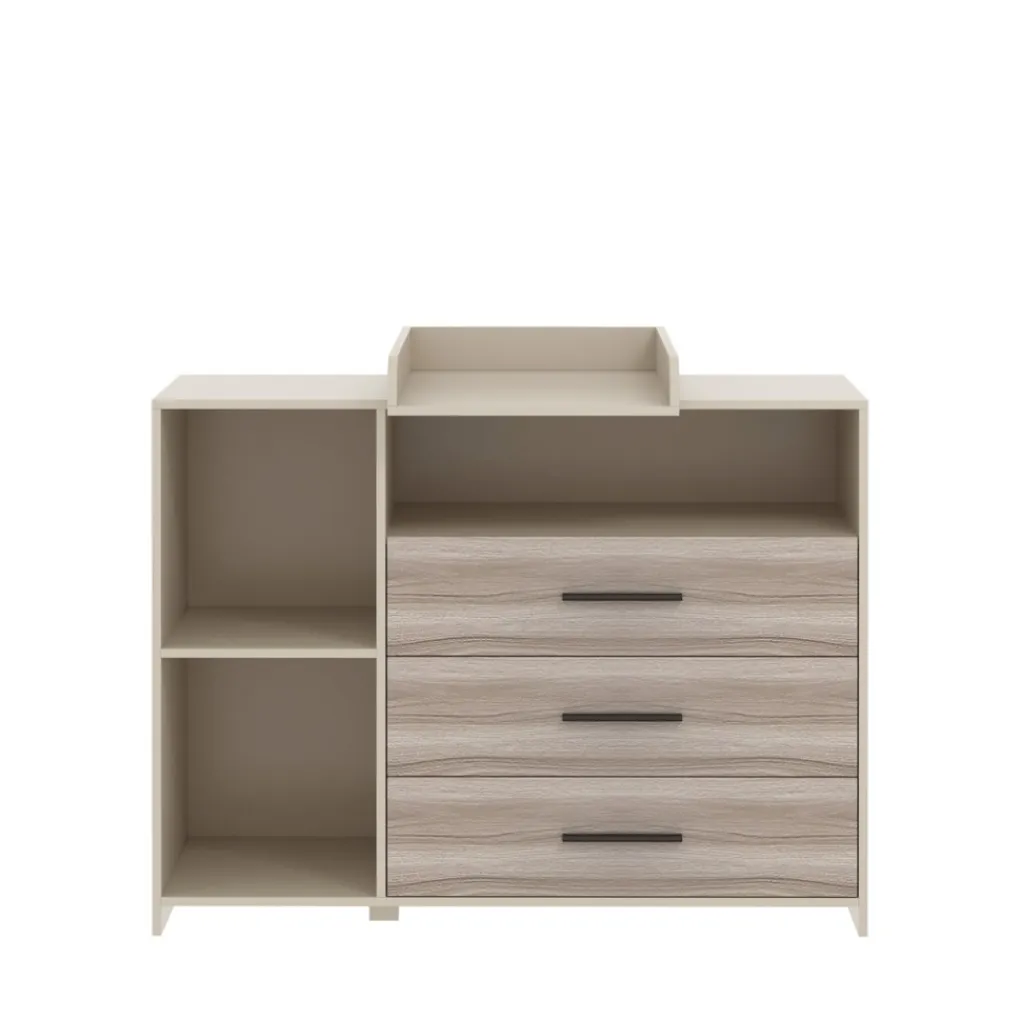 Op het ruime commodeblad kan je je kindje verschonen, verzorgen en aankleden. De verschoonopzet op de commode zorgt ervoor dat je je kindje verticaal kan verschonen. Dit is een fijne positie voor jou en je kindje. De opstaande randen zorgen voor extra veiligheid. Je kindje kan niet zomaar wegrollen.