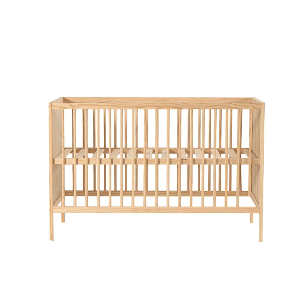 Het Born Lucky Lola Baby Bed Naturel is niet alleen een lust voor het oog met zijn neutrale kleur, maar het is ook bijzonder veilig en comfortabel. De ronde spijlen zijn zorgvuldig geplaatst op een veilige afstand van elkaar, wat niet alleen voor een stijlvolle uitstraling zorgt maar ook voor optimale ventilatie in het bedje. De slanke pootjes van het Born Lucky Lola Baby Bed Naturel geven een minimalistische en moderne uitstraling aan de babykamer.
