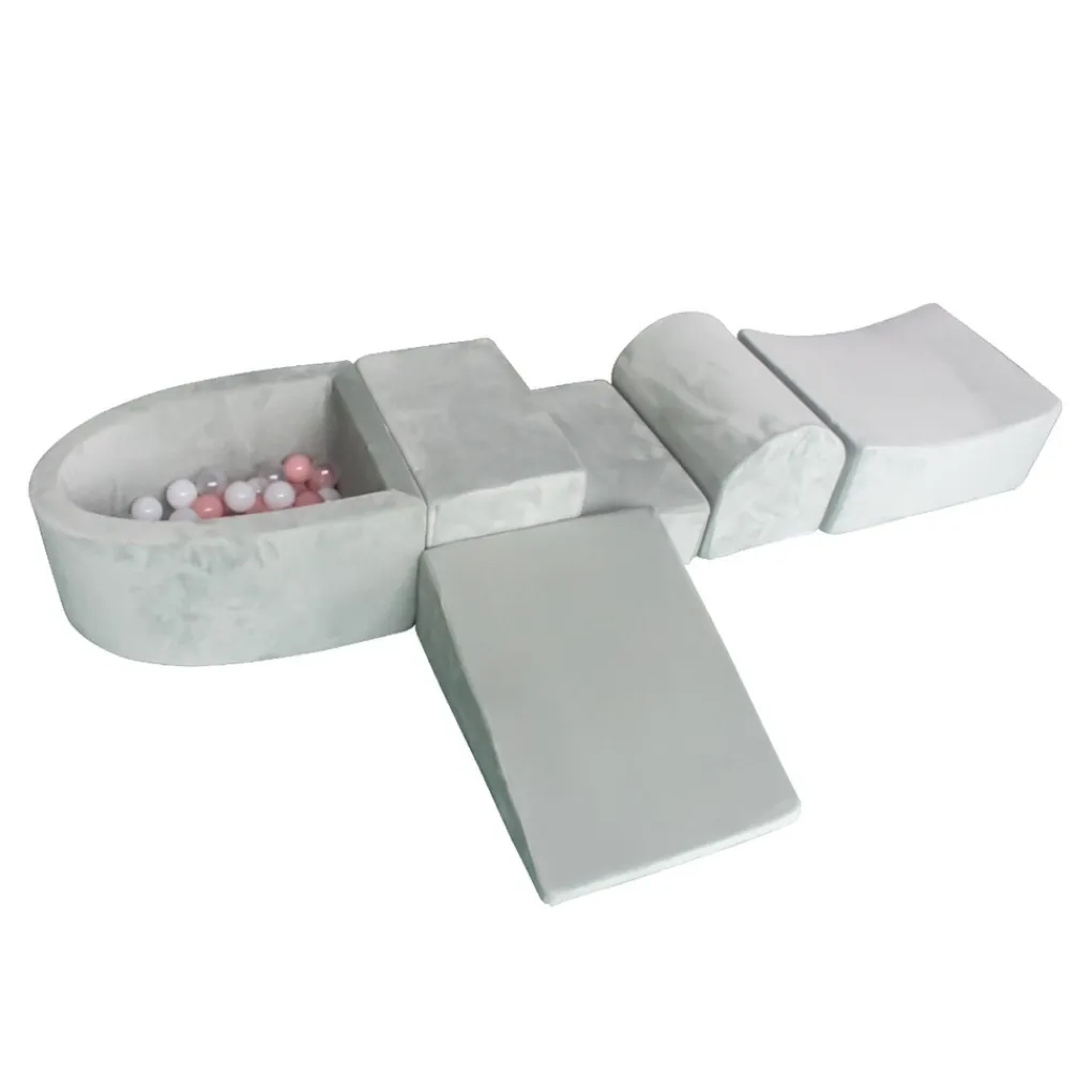 De mini ballenbak, gevuld met grote ballen in diverse kleuren, voegt een extra speelse dimensie toe aan de set. Kinderen kunnen naar hartenlust duiken en spelen in hun eigen ballenbak. Of het nu gaat om het bouwen van hindernisbanen, ruimtelijke constructies of gewoon een gezellig zitje, deze speelset biedt eindeloze mogelijkheden.