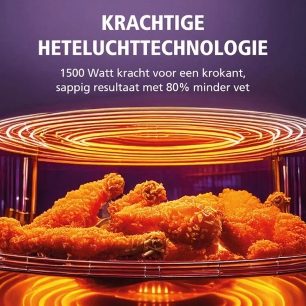 Met de Brabantia Airfryer kook je gezonder, want je hebt tot wel 80% minder olie of vet nodig dan bij traditionele frituurmethoden. De krachtige heteluchttechnologie zorgt voor een krokant resultaat aan de buitenkant en een zachte, sappige binnenkant – perfect voor frietjes, kip, groente en meer.