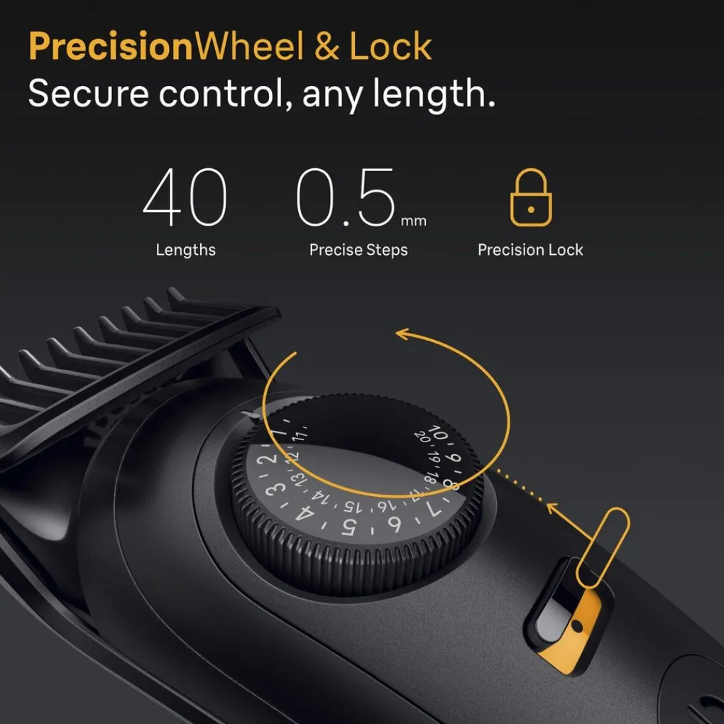 • Geen fouten meer: blijf volledig in controle bij elke trimbeurt dankzij PrecisionLock en PrecisionWheel met 40 lengte-instellingen in stappen van 0,5 mm