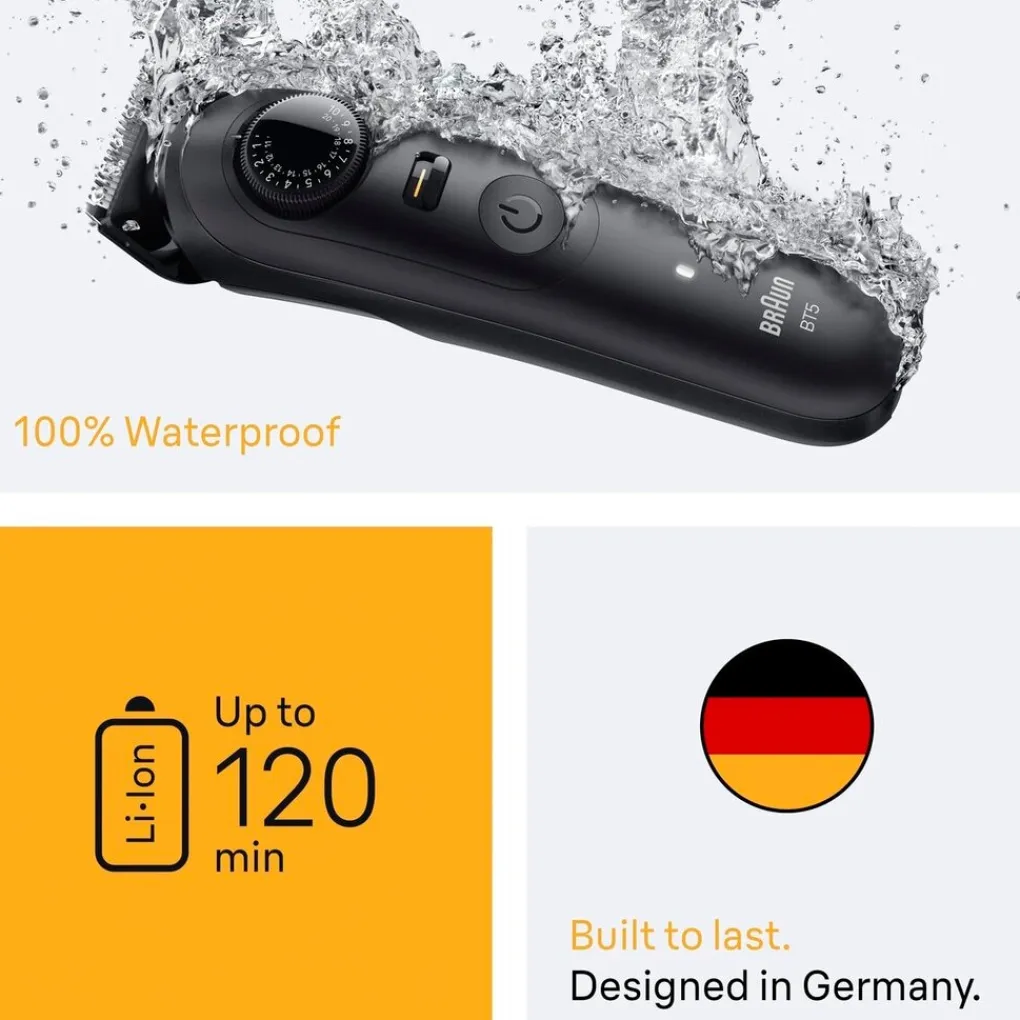 • Gebouwd om lang mee te gaan: 100% waterdichte trimmer met een langdurige Li-Ion batterij en tot 120 minuten snoerloze gebruikstijd